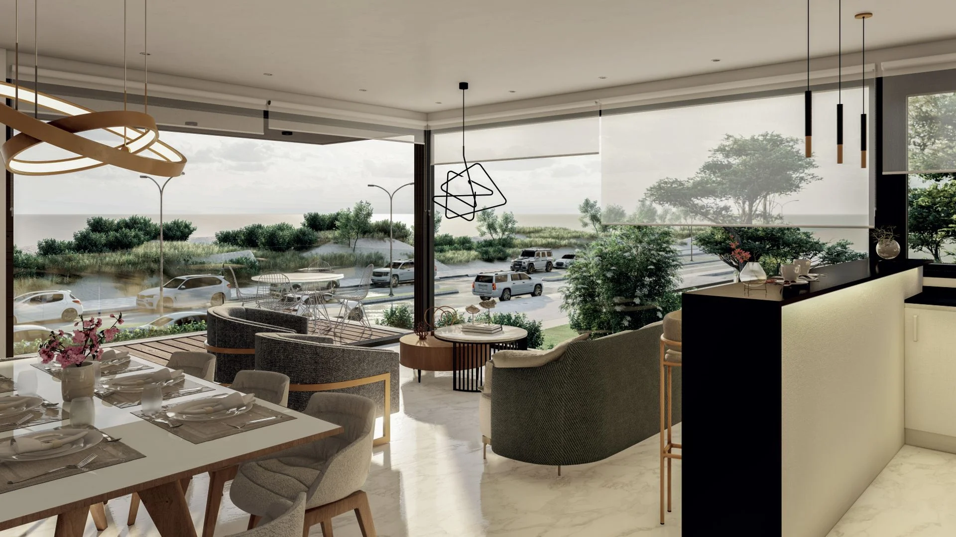 Este exclusivo semipiso ofrece una distribución funcional y elegante, con 3 dormitorios en suite que garantizan privacidad y confort. El amplio living comedor integrado con la cocina crea un espacio social perfecto, mientras que el balcón con parrillero propio de se convierte en tu rincón ideal para disfrutar de atardeceres únicos sobre la rambla.