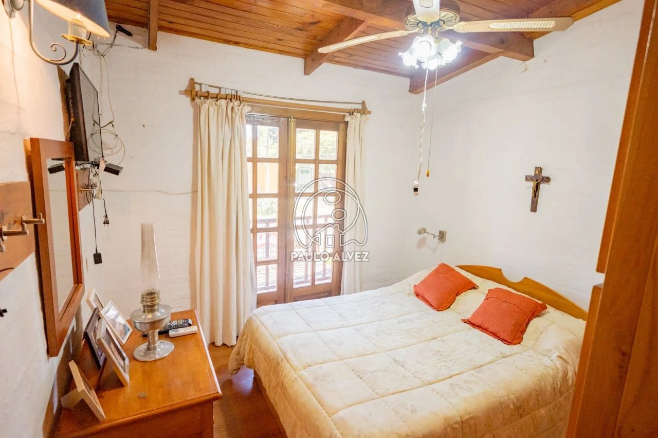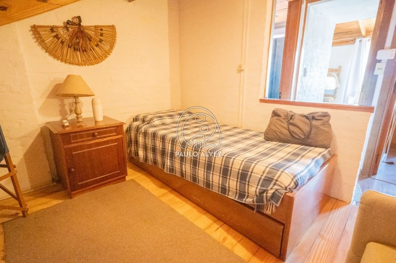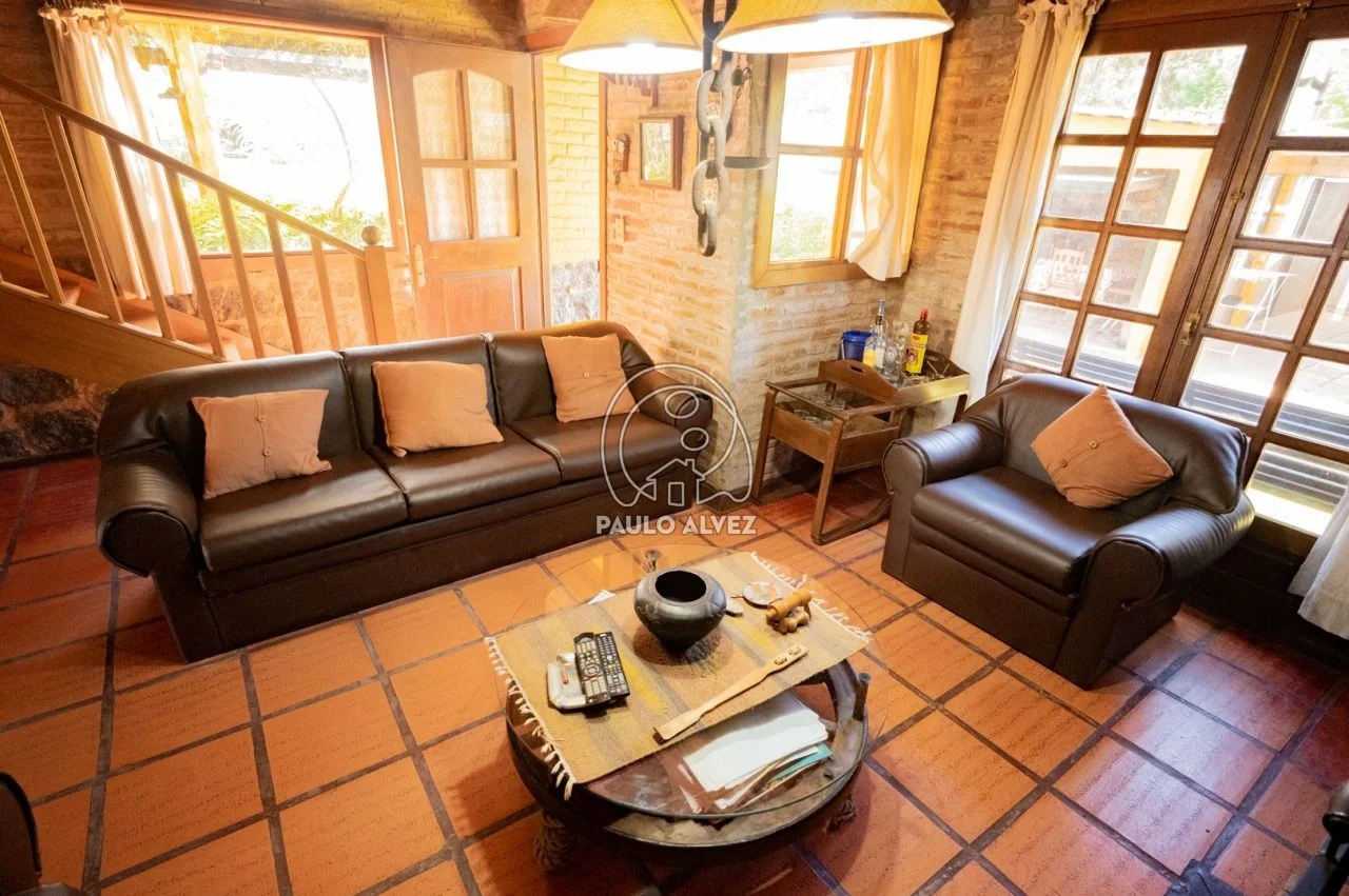 Ubicada en Balneario Playa Grande, en una zona ideal para vivir todo el año. Emplazada en un predio completamente cercado de 336 m², con 141 m² construidos en estilo tradicional: paredes de ladrillo bolseado y techo de tejas francesas con cielorraso en madera y aislación térmica. Las aberturas, puertas y escaleras están realizadas en cediño de excelente calidad, aportando calidez y distinción a cada ambiente. Su distribución se desarrolla en dos plantas: Planta baja: cocina definida, living con estufa a leña y baño completo. Planta alta: tres dormitorios, destacándose el principal con placares empotrados y balcón. En el exterior se encuentra un agradable jardín, con cochera cubierta, parrillero, horno panadero y mesada. Desde este sector se accede además a una cabaña independiente, que cuenta con dormitorio y baño, ideal para huéspedes o renta. Importante oportunidad para quienes buscan confort, calidad y entorno natural. ¡Llámanos y coordinamos tu próxima visita!