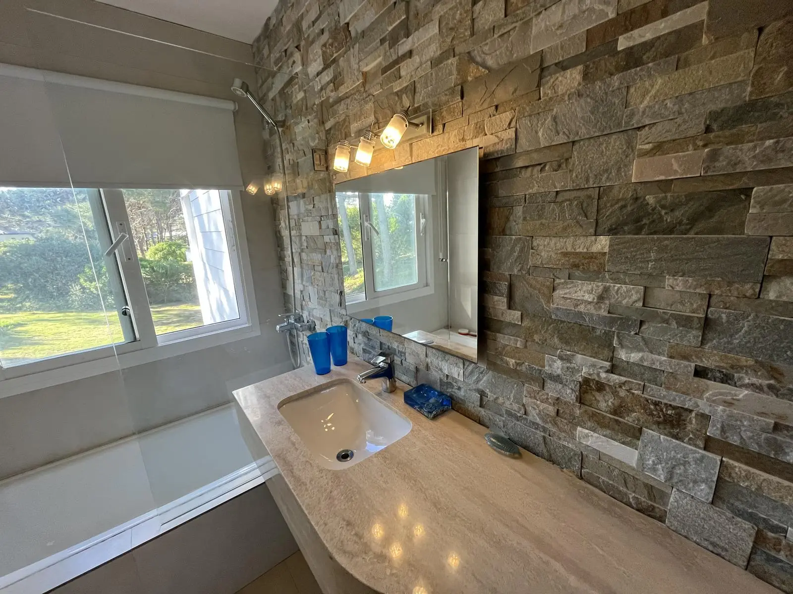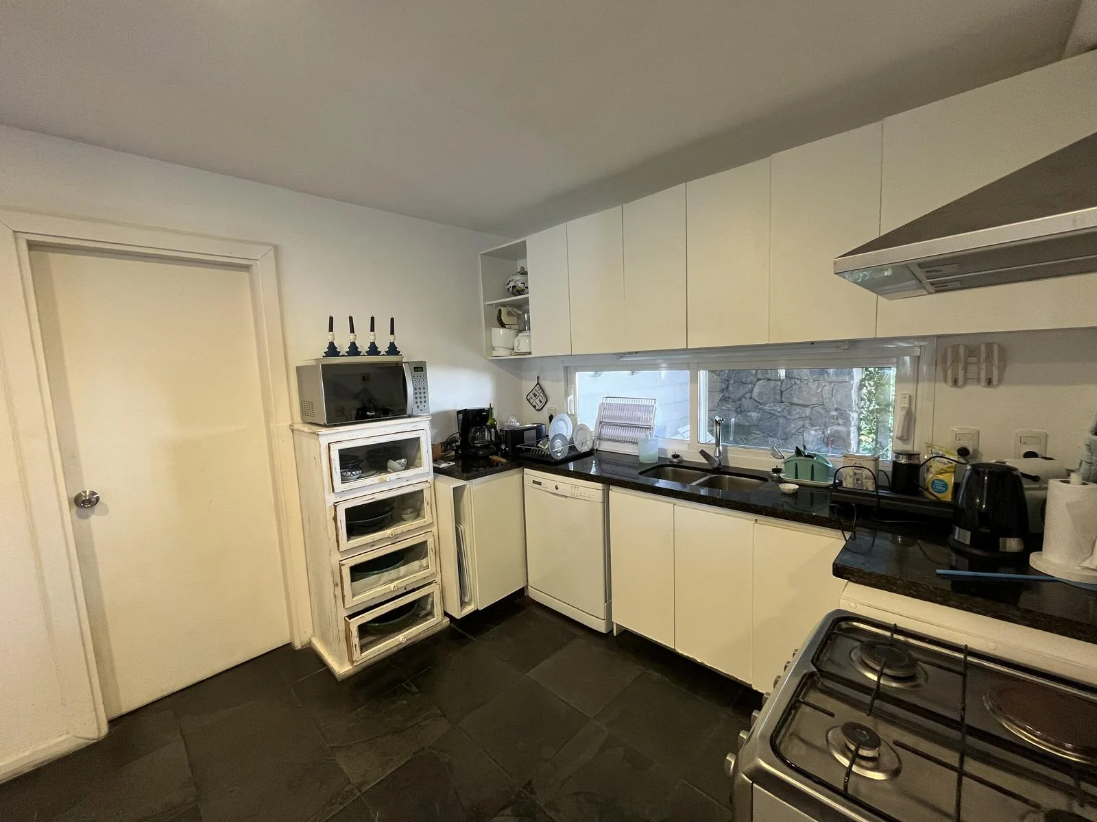 El bloque principal consta de dos niveles. En planta baja living comedor y cocina con comedor diario. Dependencia de servicio con una cama cucheta para dos personas, y el lavadero.