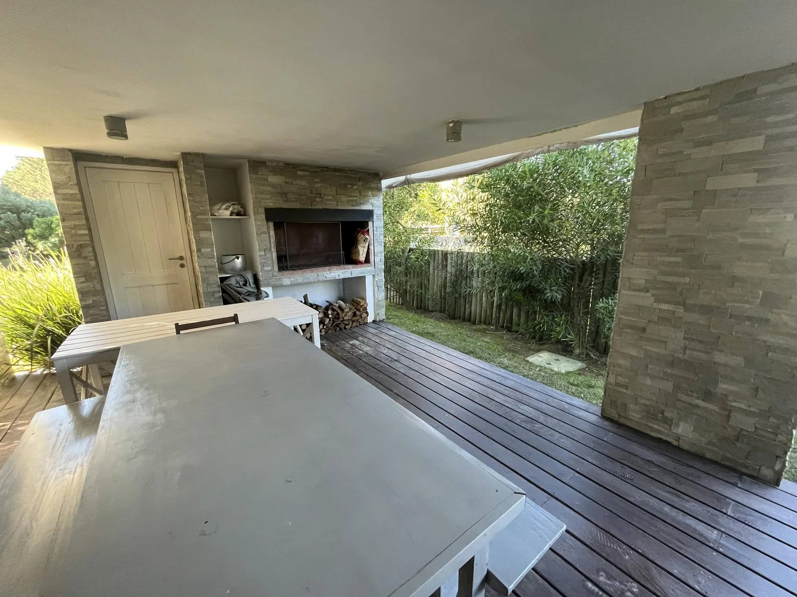 Parrillero techado con área de living y espacios para comer cómodamente.