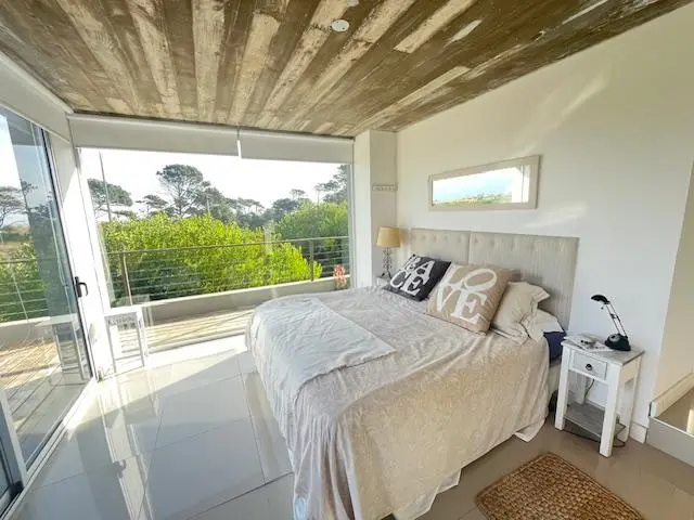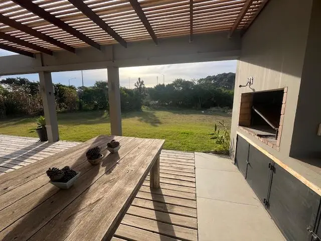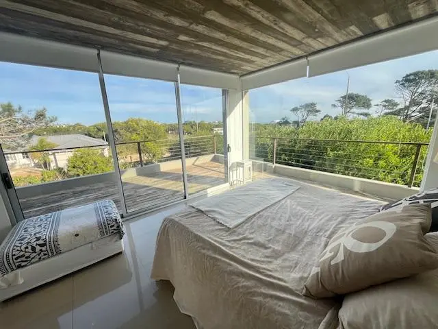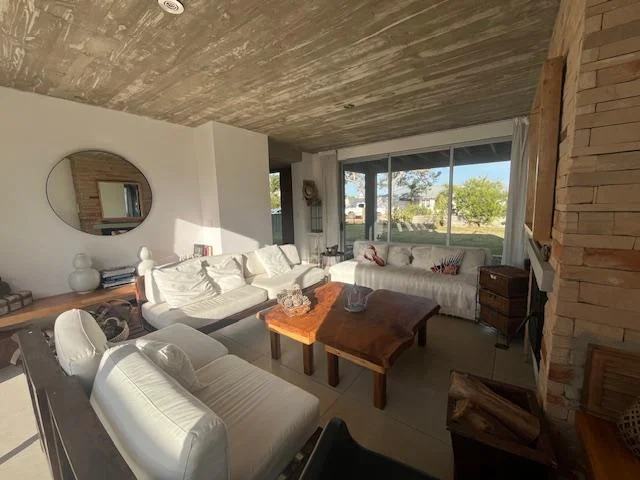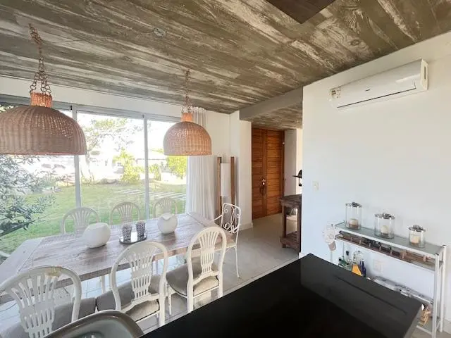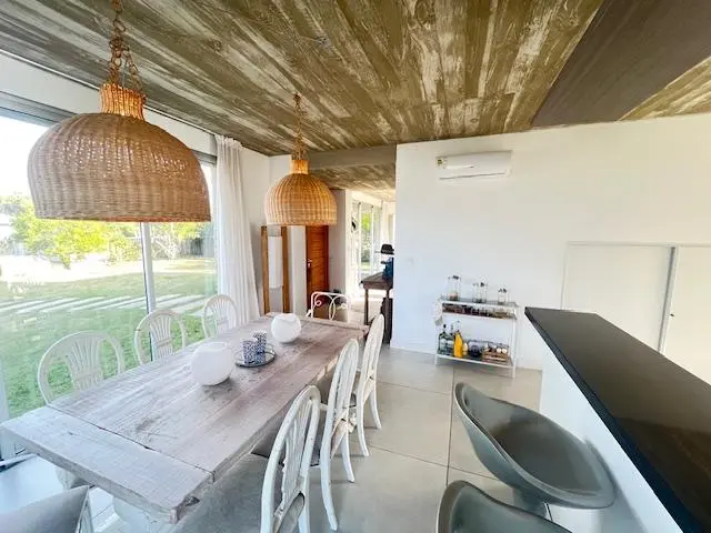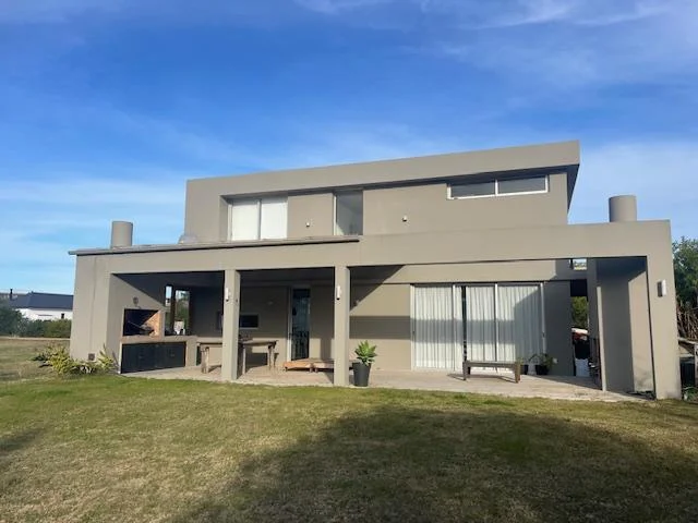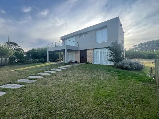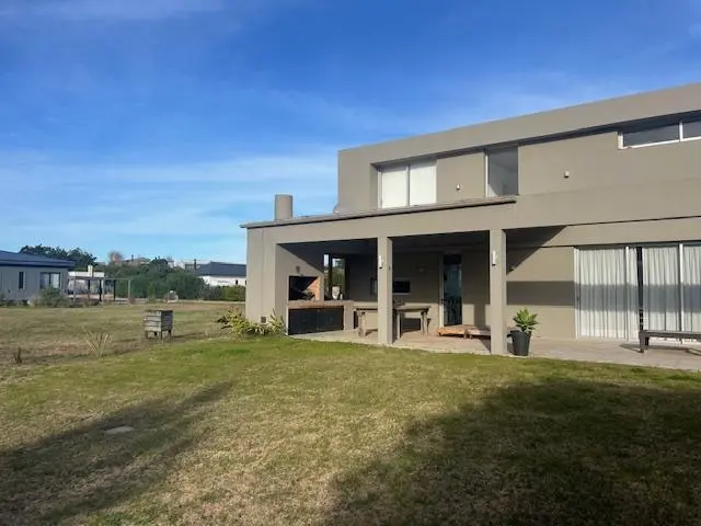 Moderna casa de dos plantas construida en un lote de 958m2. La propiedad se encuentra en este barrio privado con salida directa al mar.