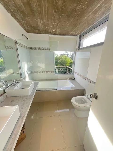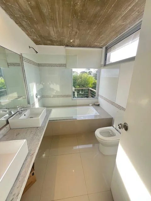 En la planta alta la suite principal con balcón terraza y dos dormitorios que comparten un baño. Estacionamiento para dos autos.