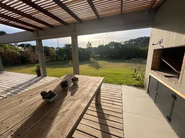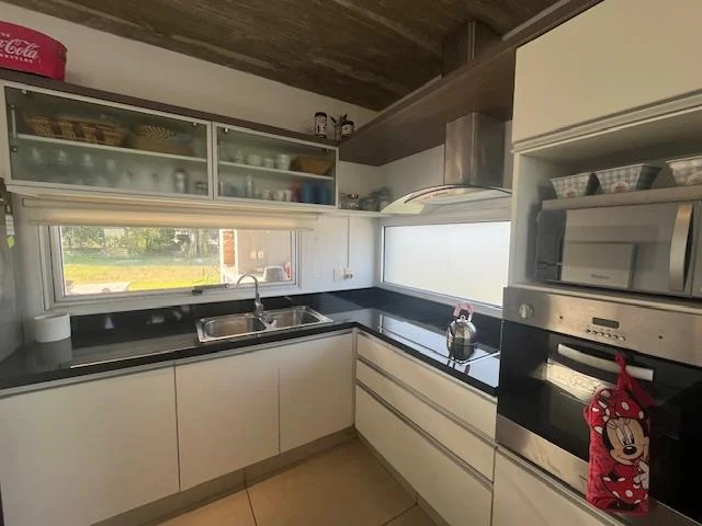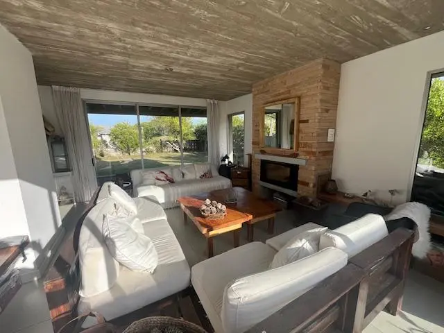 En planta baja encontramos un amplio living con vista al jardín, cocina integrada al comedor con pasaplatos y salida al parrillero y al fogón exterior. Toilette.
