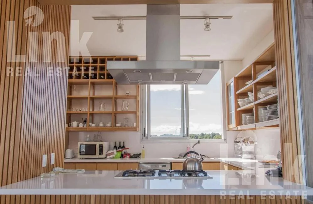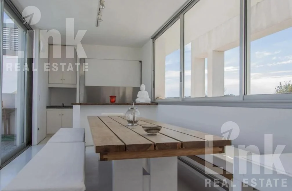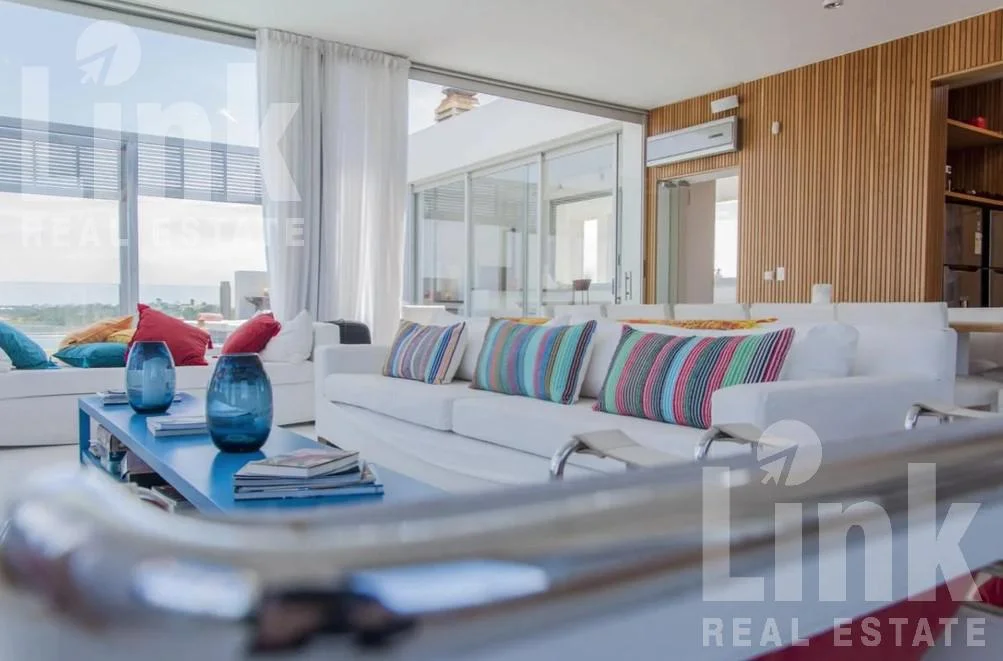 En la planta superior, sector principal de la casa, se aprecia una de las mejores vistas panorámicas al mar y al entorno, desde un increíble living con hogar a leña o en su espectacular terraza con pileta y camastros. Ambos espacios integrados para mejor comodidad. Cuenta con cocina estilo americano y barbacoa cubierta.