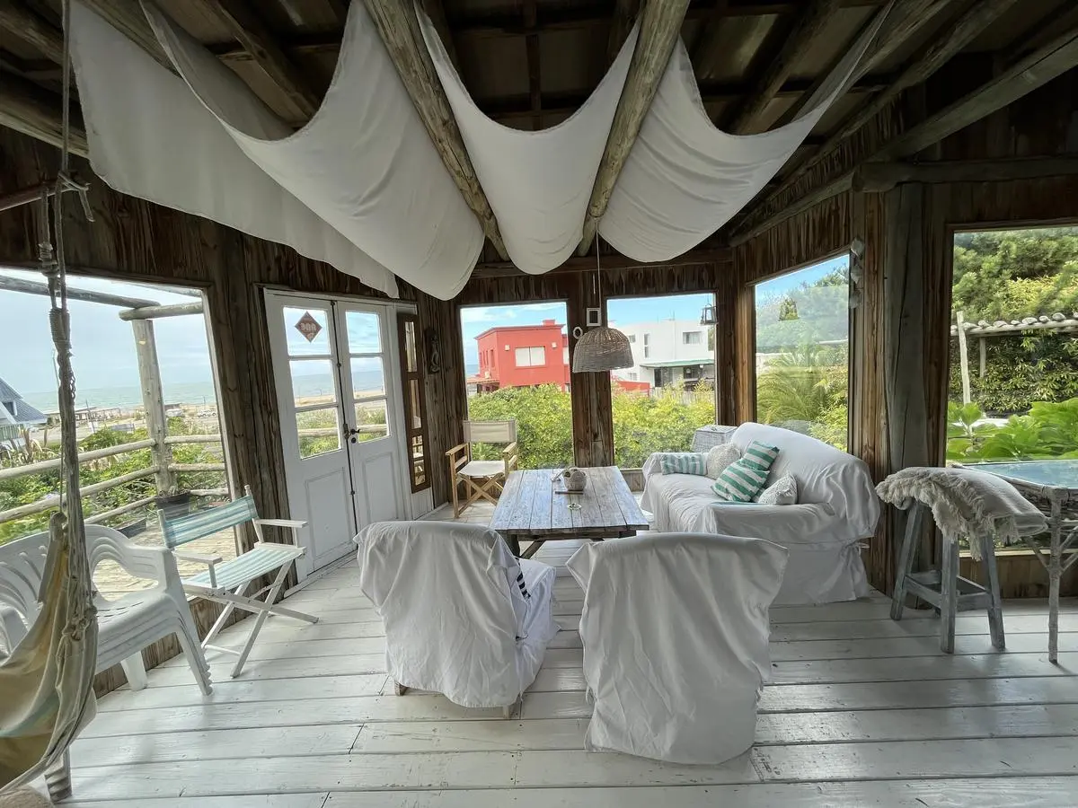 El deck con parrillero esta totalmente cerrado y techado con gran vista al mar e incorporado a la casa.