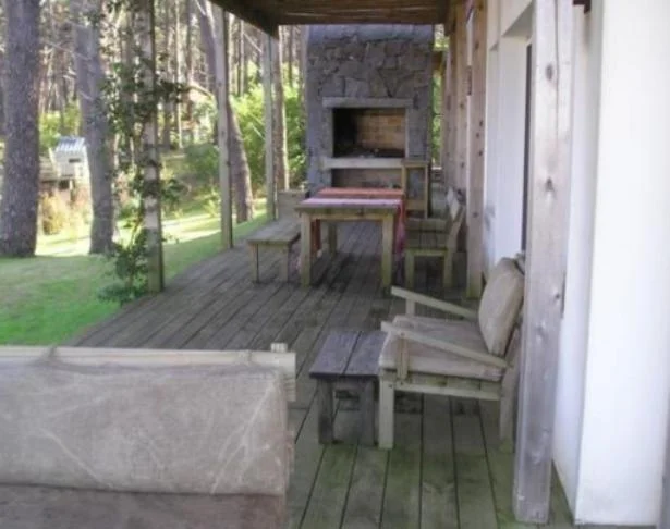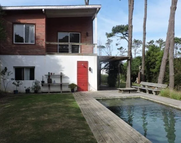 Esta casa ubicada en Montoya, diseño de Martin Gomez,  tiene un living y comedor muy espacioso con ventanales que abren a un deck con gran vista al mar ! Vista a el jardín que rodea la casa con añosos pinos y piscina. A tan solo dos cuadras de la playa!