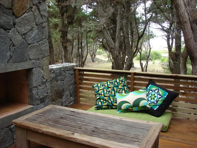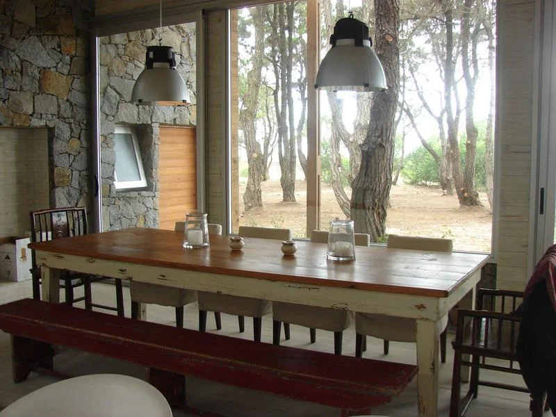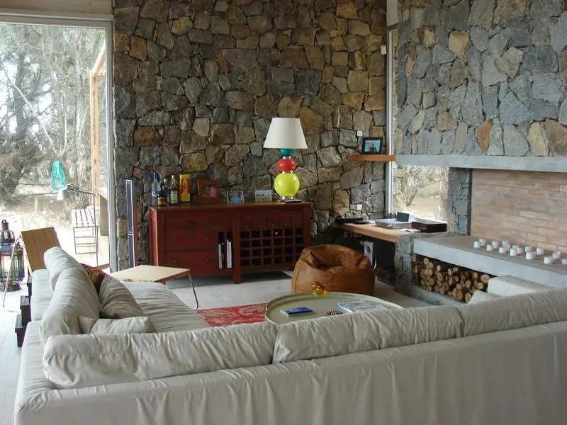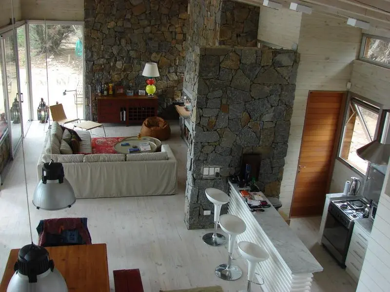 Casa de 3 dormitorios frente al mar dentro del Pueblo San Vicente. La casa construída en piedra gris, tiene un estilo moderno y un entorno agradable, rodeada de pinos. En la planta alta se encuentra la suite principal con baño completo y una terraza con hogar y vista al mar. En la planta baja tenemos dos dormitorios con un baño, toilette, living comedor, cocina integrada estilo americana, lavadero, y barbacoa. La casa esta totalmente equipada, alarma, aire acondicionado en el living comedor y suite principal, equipo de musica, telefono, TV , etc. Pileta.