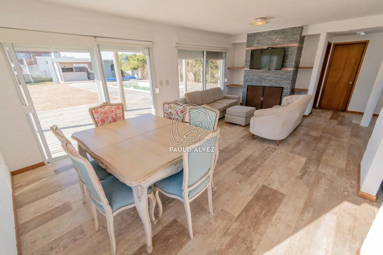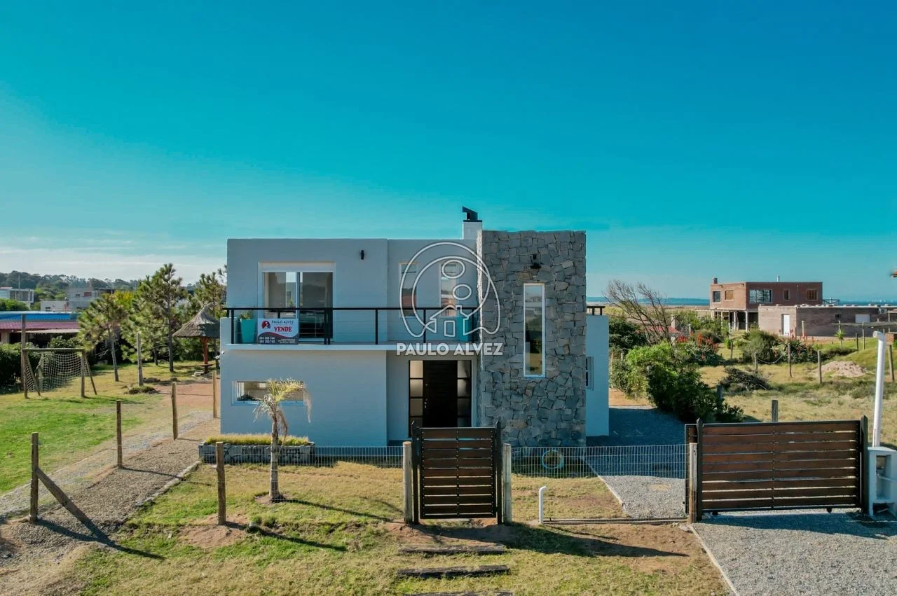 Ubicada en Balneario Punta Negra, donde se encuentra el equilibrio justo entre naturaleza y tranquilidad, a pocos metros del mar. Propiedad de estilo minimalista, sobre terreno de 600 m² con 184 metros edificados, totalmente cercado. Distribuida en dos plantas, planta baja living comedor con estufa a leña, cocina definida por barra desayunador equipada con muebles bajo y sobre mesada, baño social completo y primer dormitorio con tres plazas. Cómoda escalera a planta alta, pasillo distribuidor hacia dormitorio matrimonial en suite con placares empotrados, aire acondicionado y vista al mar, tercer dormitorio. Salida por ambos dormitorios a terraza con vista a los cerros y mar. Hermoso parque enjardinado, deck en madera, fabulosa piscina climatizada, barbacoa y cochera, Consulte por más información