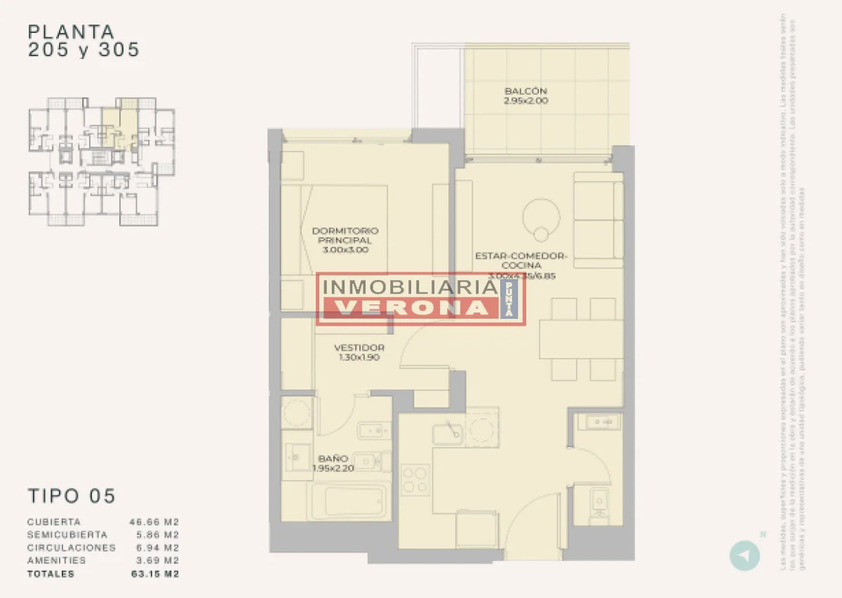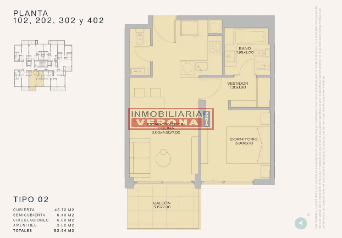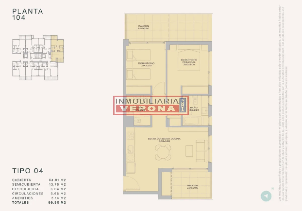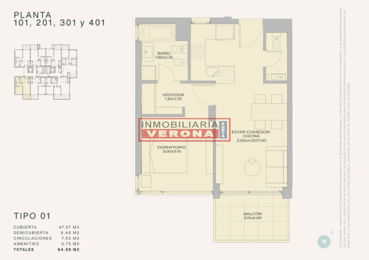 Con una superficie total de 64 m², este espacio ha sido diseñado para maximizar la luz natural y la funcionalidad. La cocina integrada se conecta armoniosamente con el living y el comedor, creando un ambiente ideal para disfrutar de momentos inolvidables con amigos y familiares. Además, contarás con el servicio de mucamas, asegurando que tu hogar siempre esté impecable.