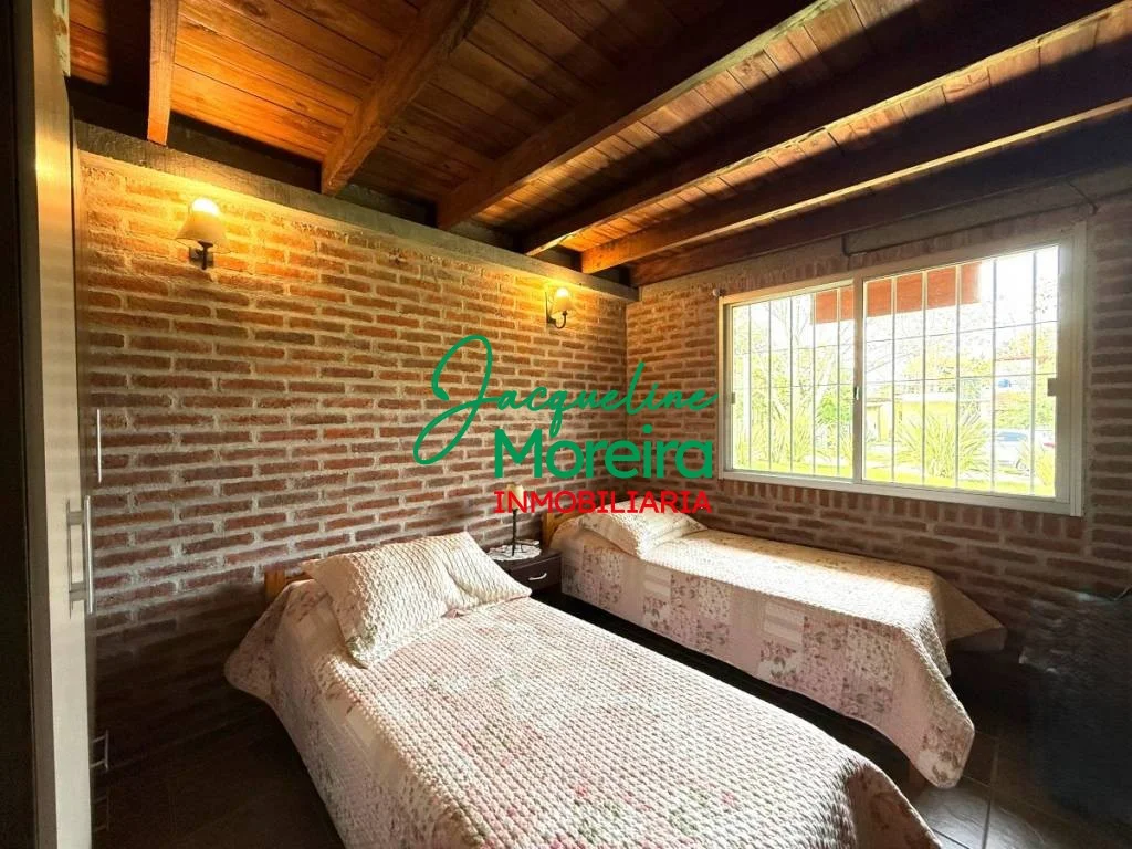 *C101754* MAMABRUSA, es una casa de construcción tradicional de 2 plantas, con paredes de ladrillo, techos de teja de buena calidad, aberturas en grueso aluminio con rejas. La casa cuenta en su planta baja con living comedor y cocina integrados, de muy buen tamaño y luminosidad natural, dado la cantidad de aberturas que dispone. Estufa a leña tradicional. 1 Dormitorio amplio con placard y 1 baño completo En la segunda planta que balconea hacia el living, hay 2 dormitorios semidefinidos, uno con balcón viendo a los cerros y el amanecer y el otro con gran terraza con espacio para mesa, sillas, sillones, etc.. y unas hermosas vistas al jardín trasero y parciales al mar. Parrillero techado con techo liviano y un toldo articulado si se quiere ampliar, zona de comedor exterior muy amplia, ideal para quienes disfrutan de reuniones y festejos. Piscina Climatizada con caseta para bombas. Al fondo en un contenedor revestido transformado en Casa de huéspedes, con un dormitorio amplio (2 cuchetas) y un baño completo. En el fondo hay 2 cocheras con sombra. Espacios verdes amplios y disfrutables, enjardinados y arbolados. Barrio tranquilo, seguro y con vecinos todo el año. Su cercanía al mar la convierte en el lugar ideal para descansar y desconectar. Piriápolis y todos sus servicios queda a pocos minutos, pero además a sólo unas cuadras dispone de comercios barriales como minimercados, panaderías, etc... y pasaje de ómnibus desde y hacia Montevideo, Piriápolis, Punta del Este...