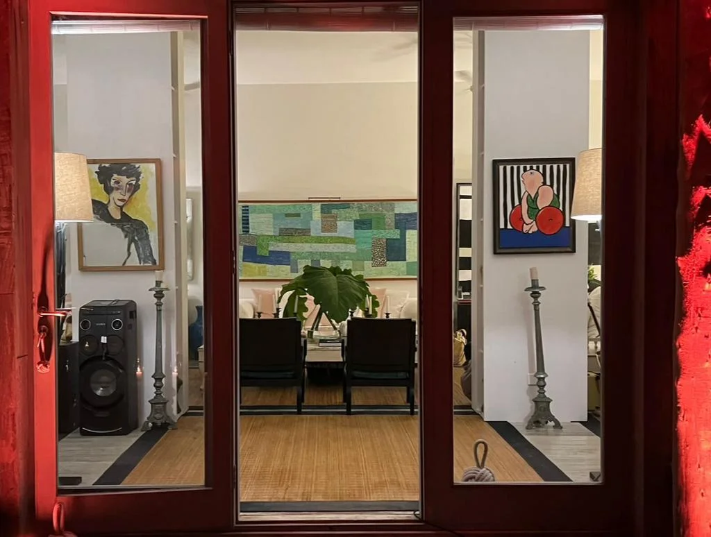 We have two accesses to the house from the street: one through the kitchen and the other through the direct pool. Next to the kitchen is the maid's quarters. Upstairs there is a guest suite. Between this area and the main house is the swimming pool, on a wooden deck with comfortable lounge chairs and surrounded by plants. The main house has 2 apartments with 2 bedrooms and 1 bathroom each. One on the first floor with access to the pool and the other on the 2nd floor with 2 double beds and dressing rooms for both bedrooms.