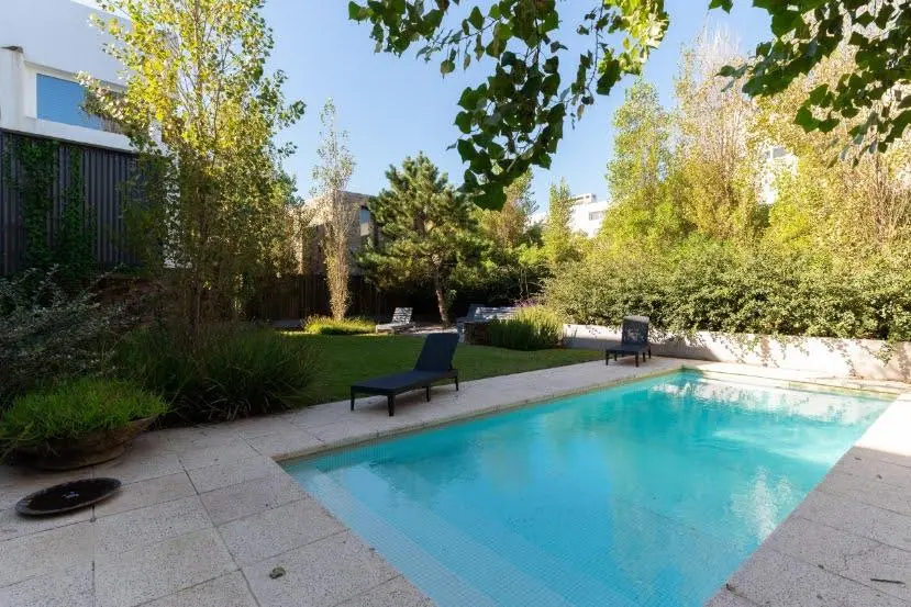 Se distribuye de la siguiente manera: en el ala Norte, en la planta baja, la dependencia de servicio, el lavadero y un playroom con salida al jardín donde se encuentra la piscina.