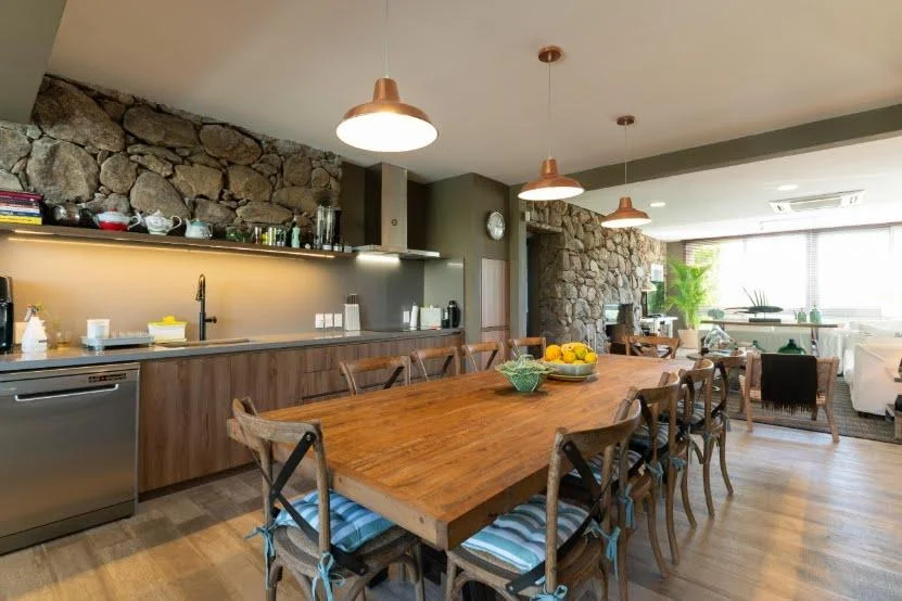 En la planta alta, un precioso living comedor con cocina integrada y el toilette.