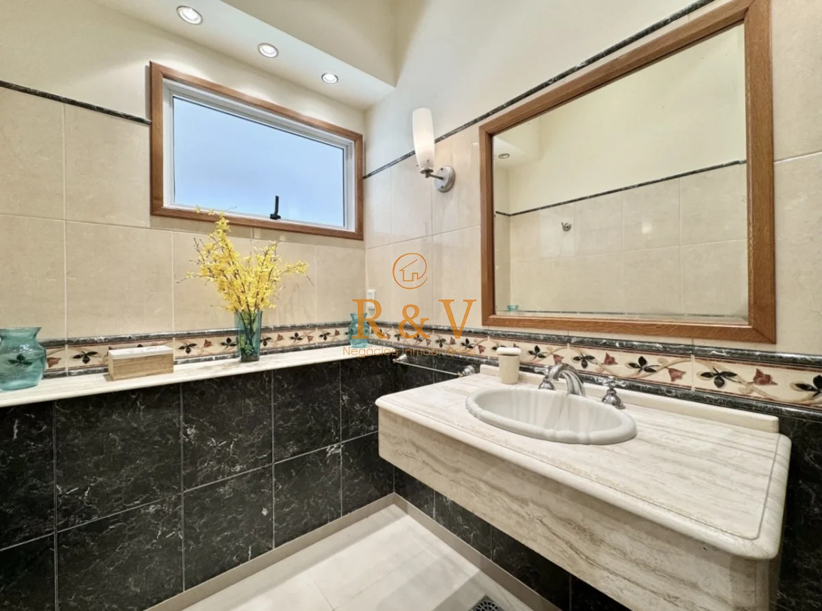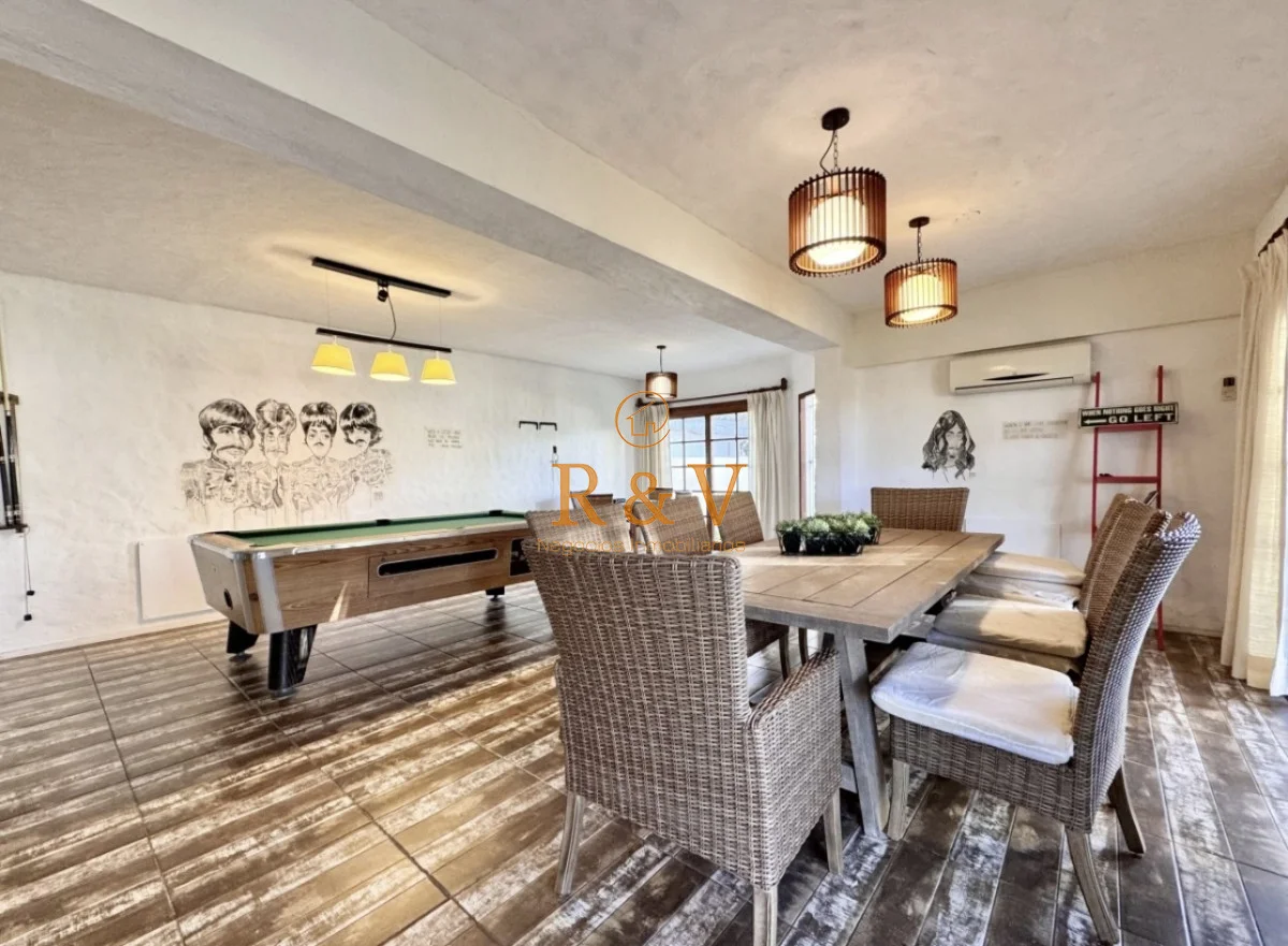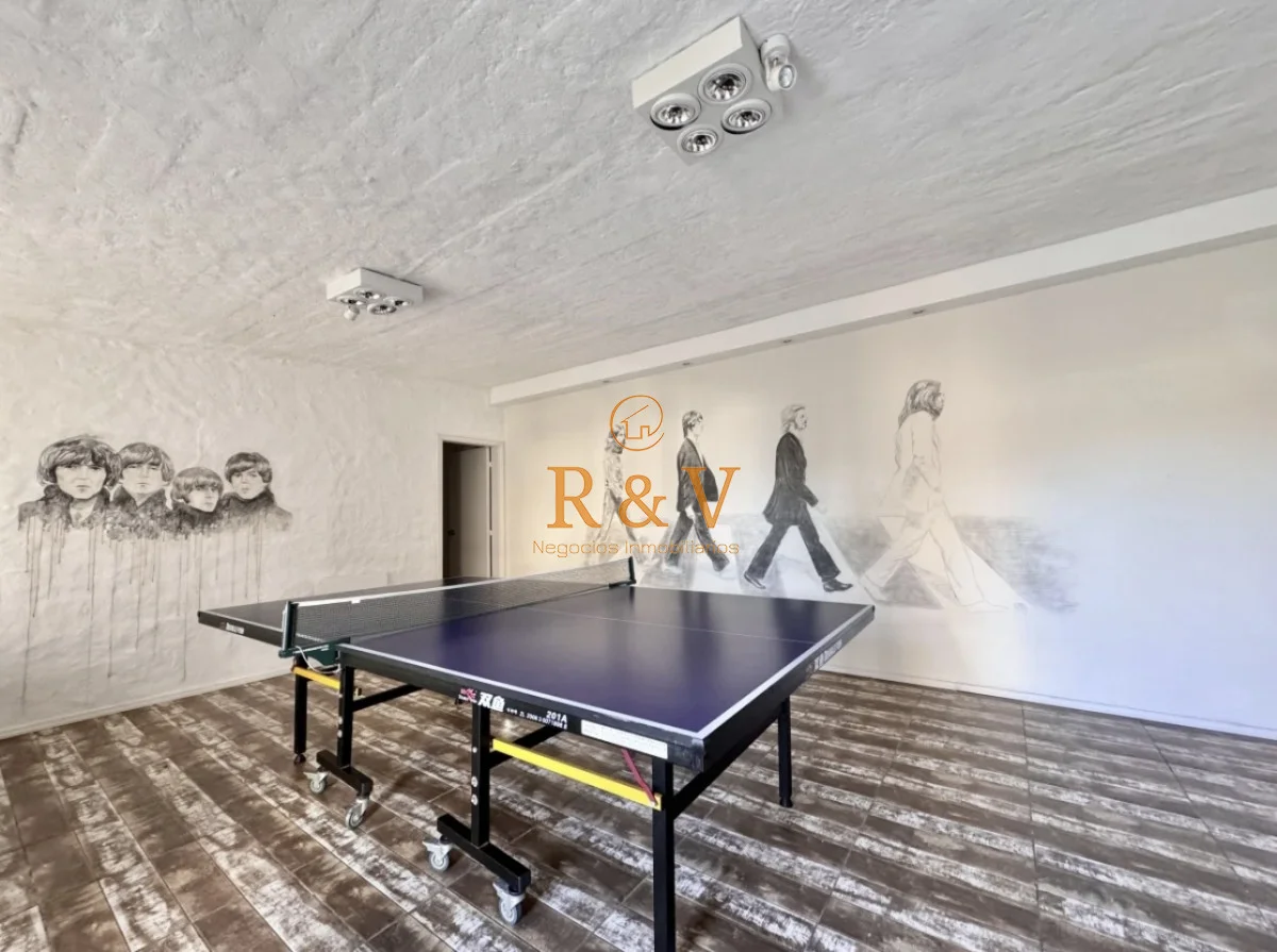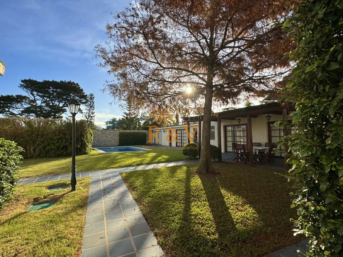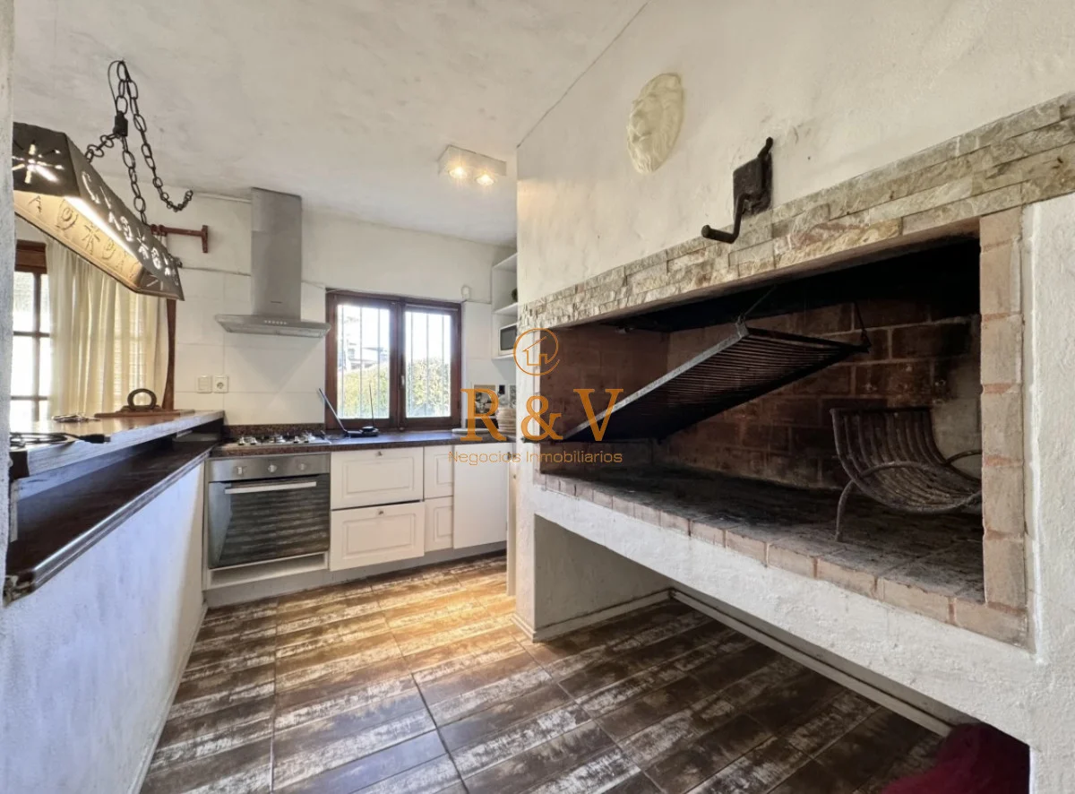 Gran jardín, totalmente cercado, donde se ubica la piscina climatizada junto a la barbacoa cerrada, que cuenta con mesa de ping pong, pool, cocina y un muy buen espacio para recibir invitados. También tiene su baño completo.