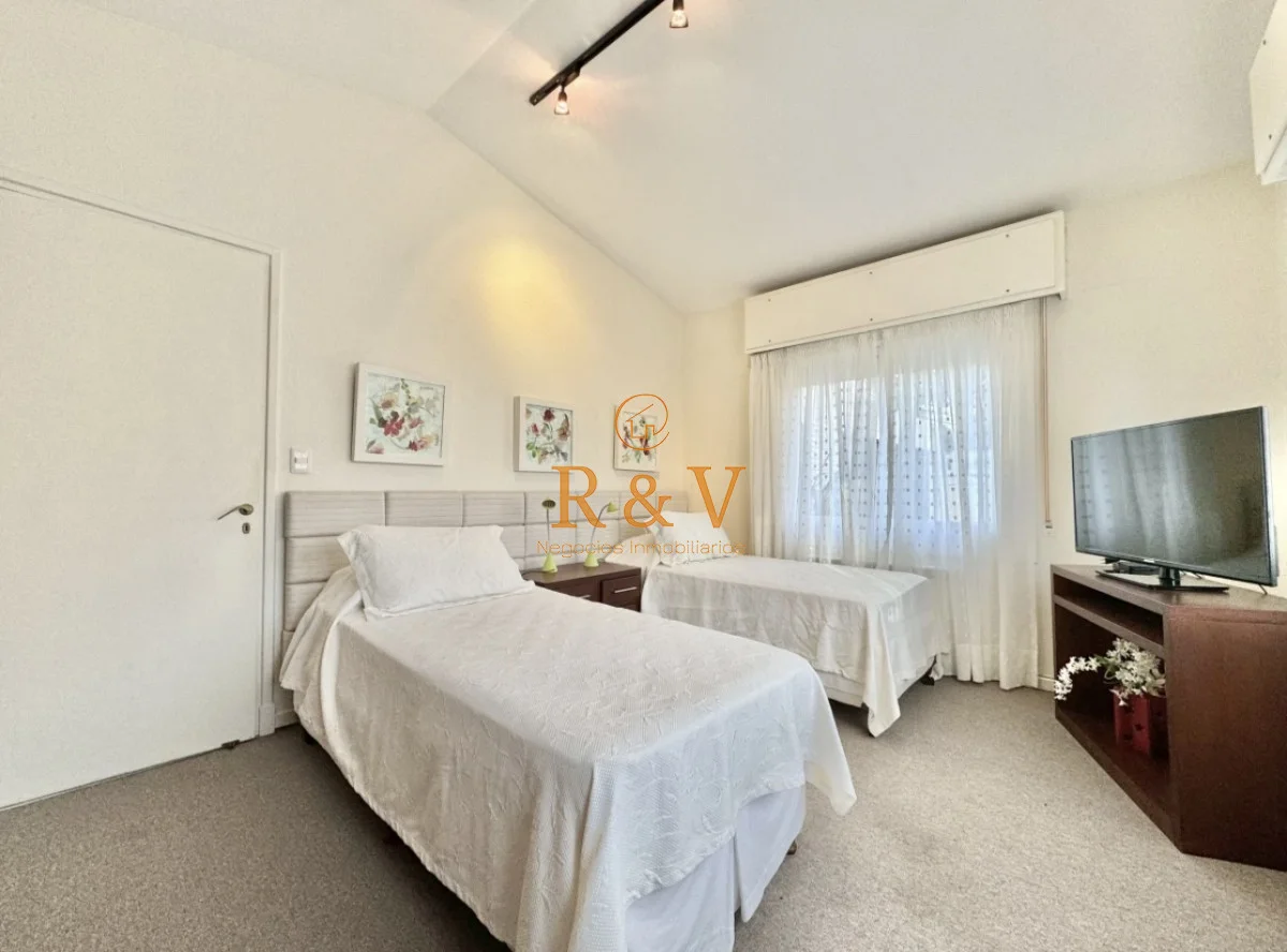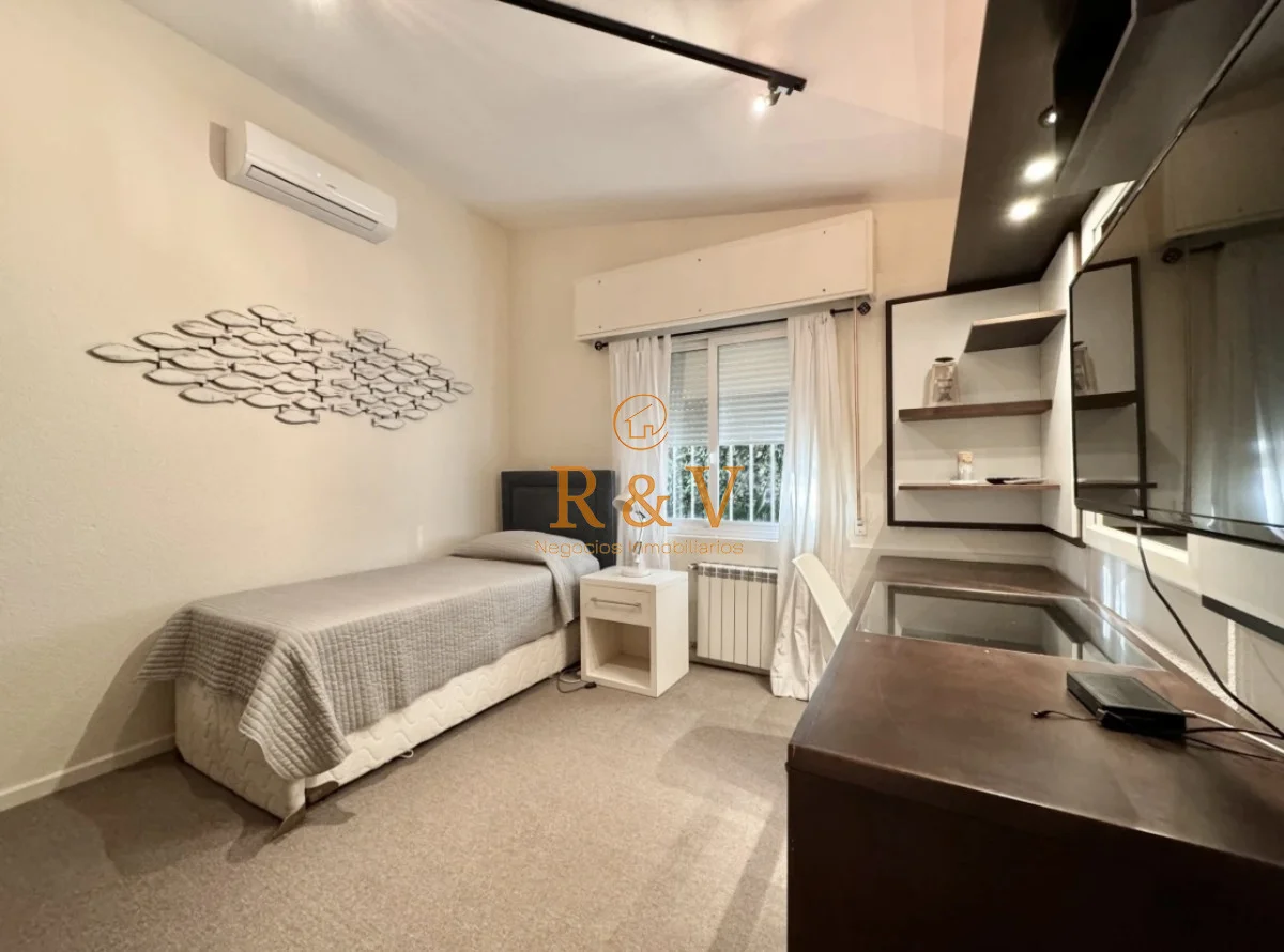 Cuenta con cuatro cómodos dormitorios, dos en suite, todos con aires acondicionados. Amplio y luminoso living comedor con estufa a leña. Moderna cocina muy bien equipada, con área de lavadero. Dispone también con un estudio que puede ser tomado como otro dormitorio.