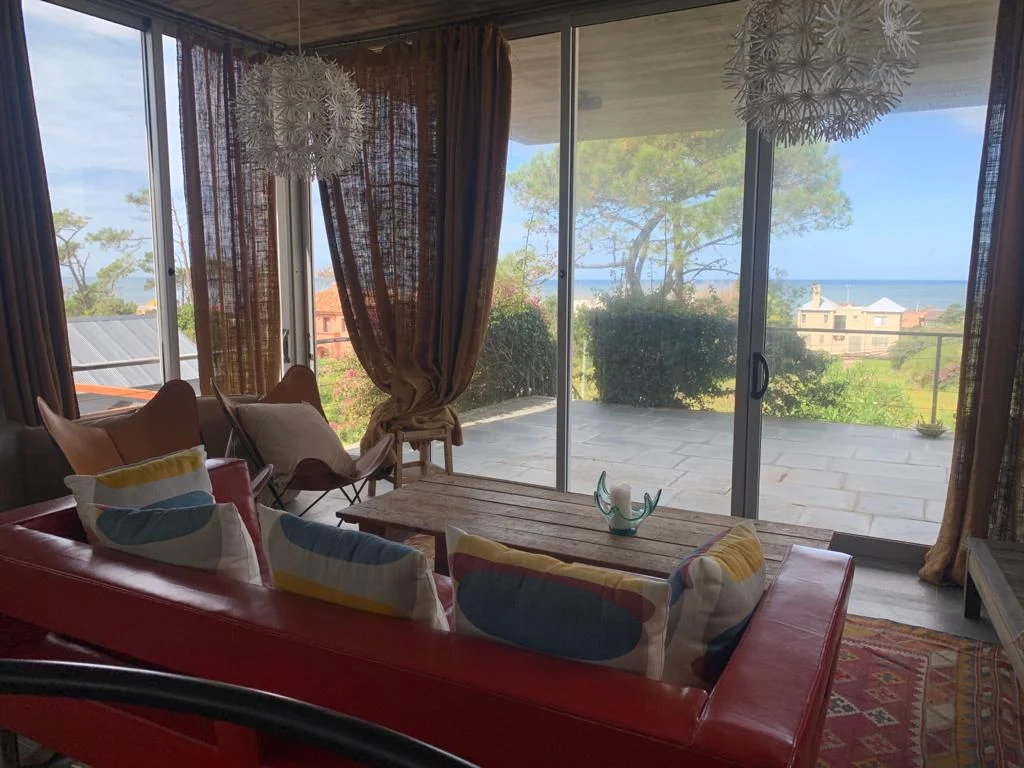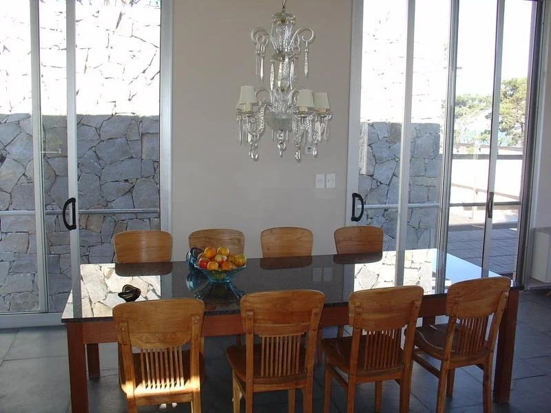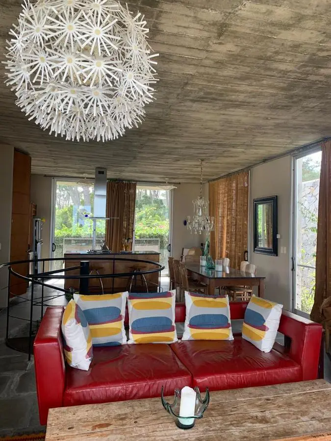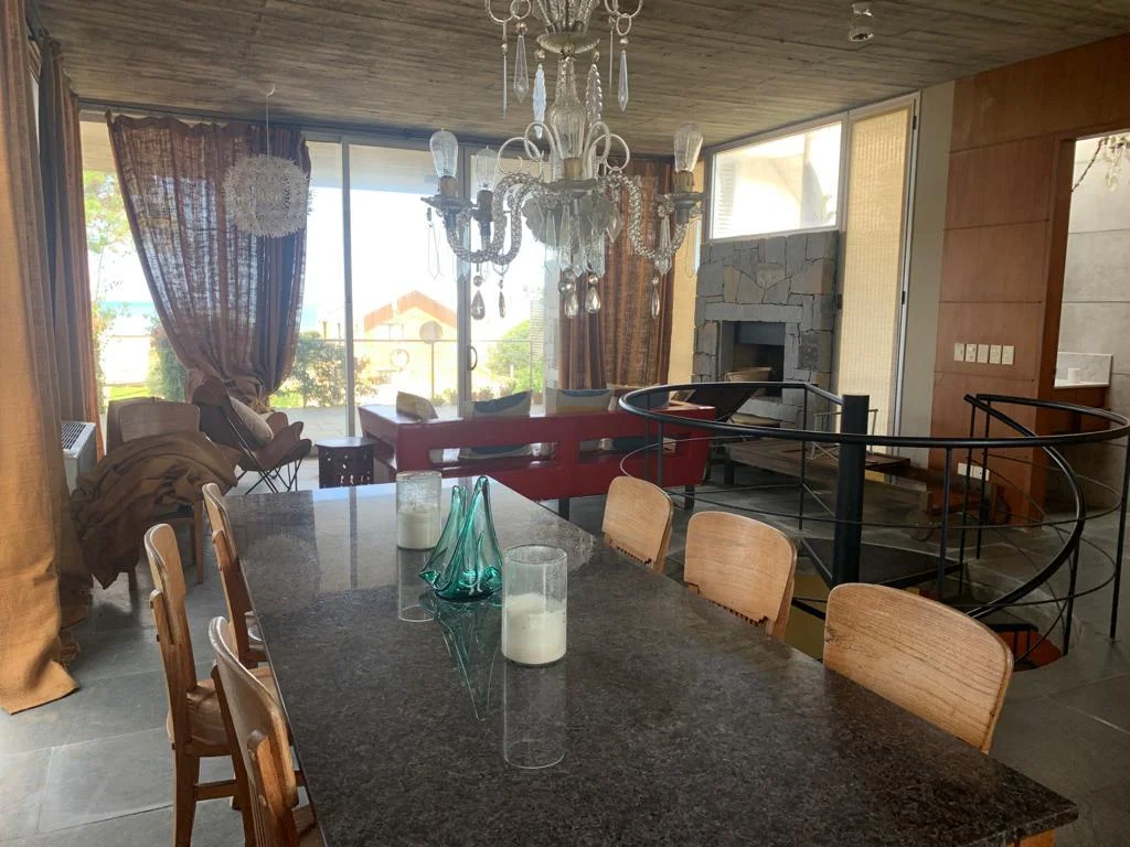 Casa desarrollada en un terreno de 600 mts, en altura, logrando muy buenas visuales . Distribuida en dos plantas, cuenta con 3 dormitorios en suite, en planta baja con muy buenos detalles. El principal al frente con vista al mar y chimenea. El living- comedor y la cocina que se encuentra integrada, mas el toilette, están ubicados en la planta alta, desde donde se logra una vista espectacular, en el balcón terraza al frente esta la parrilla. En la parte trasera del jardín tenemos lavadero con tender.