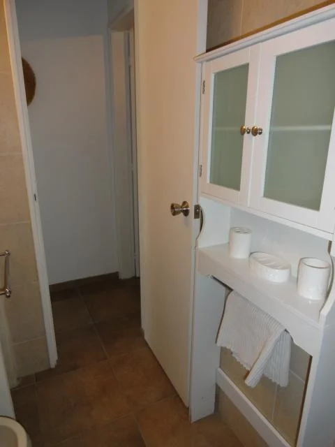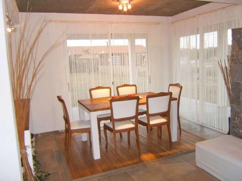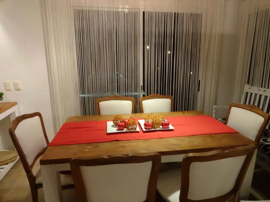 Casa en alquiler,  construida en dos plantas sobre la ruta 10, en Balneario Buenos Aires. La propiedad cuenta con tres dormitorios, dos baños.  uno de ellos en suite.