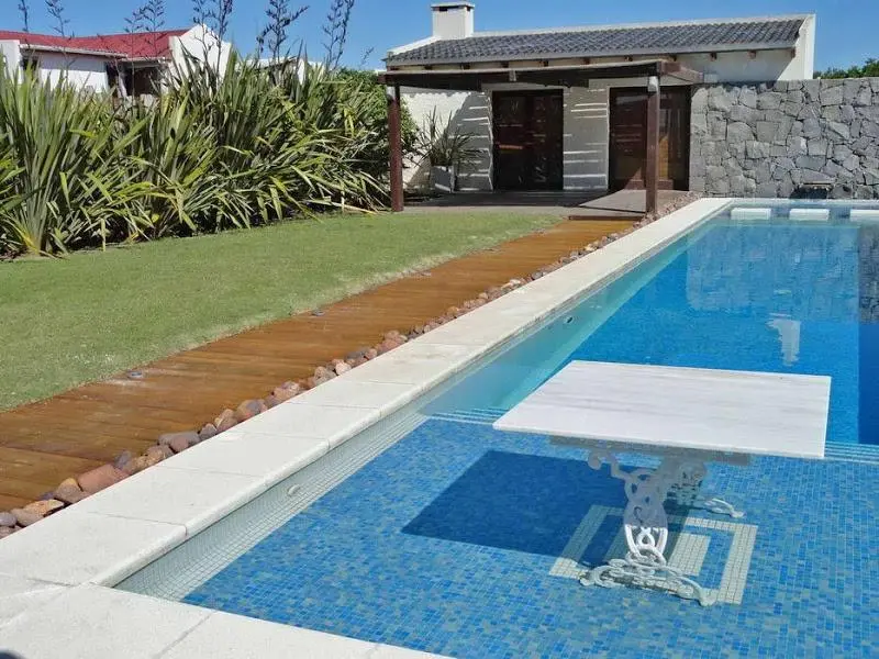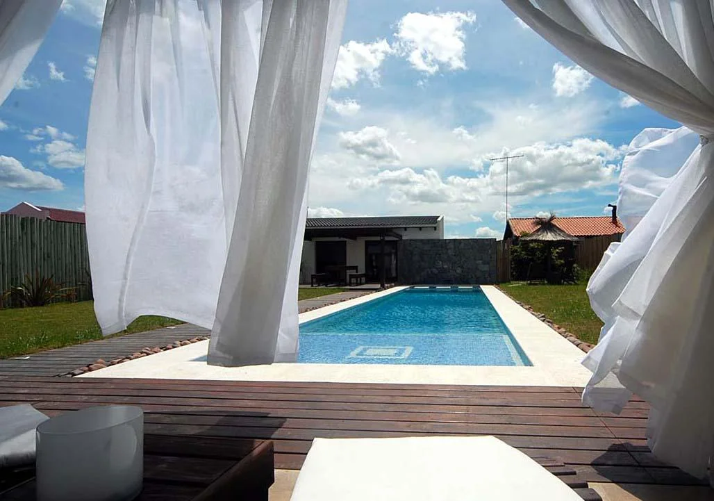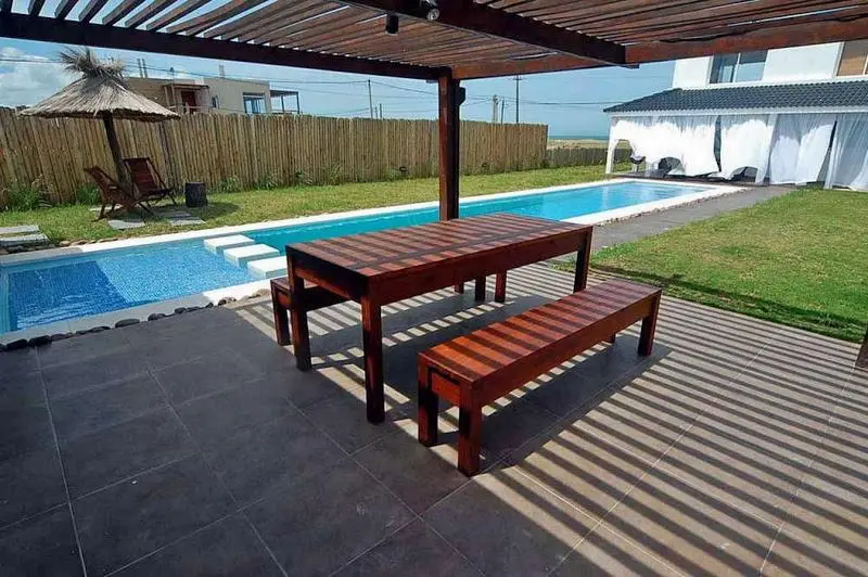 Moderna cocina integrada al comedor y al living . Parrillero techado, balcón con vista al mar y una gran piscina climatizada. Garage para dos autos.