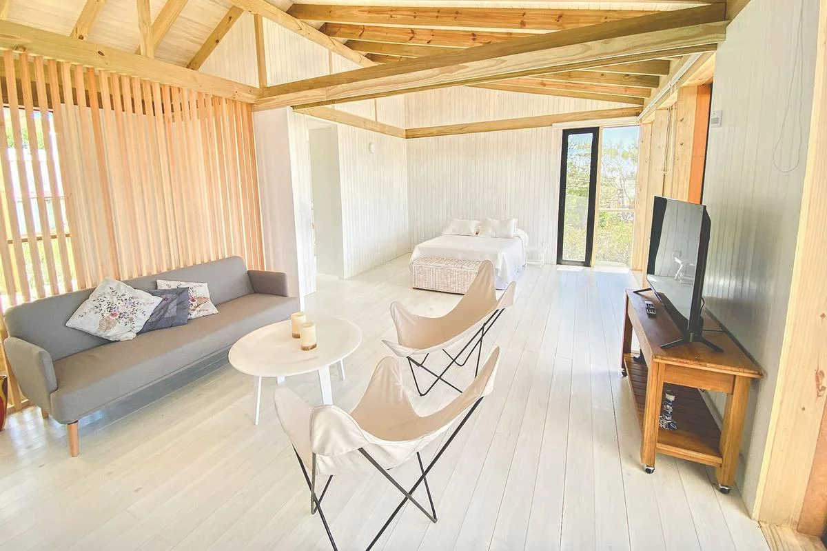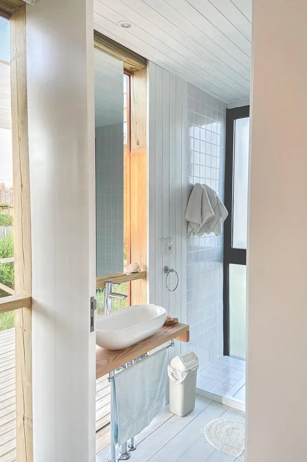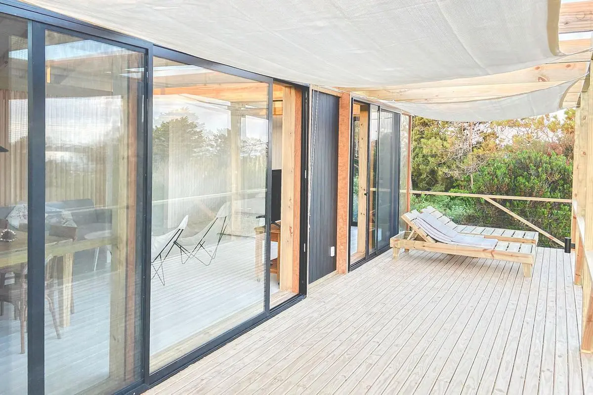 En planta alta: la suite principal que se cierra mediante una puerta corrediza la cual permite que tambien se integre al living comedor cocina, dejando la planta alto como si fuera un loft. Terraza con vista al mar con reposeras para disfrutar del afuera y otra terraza al fondo con vista al verde del jardin. .