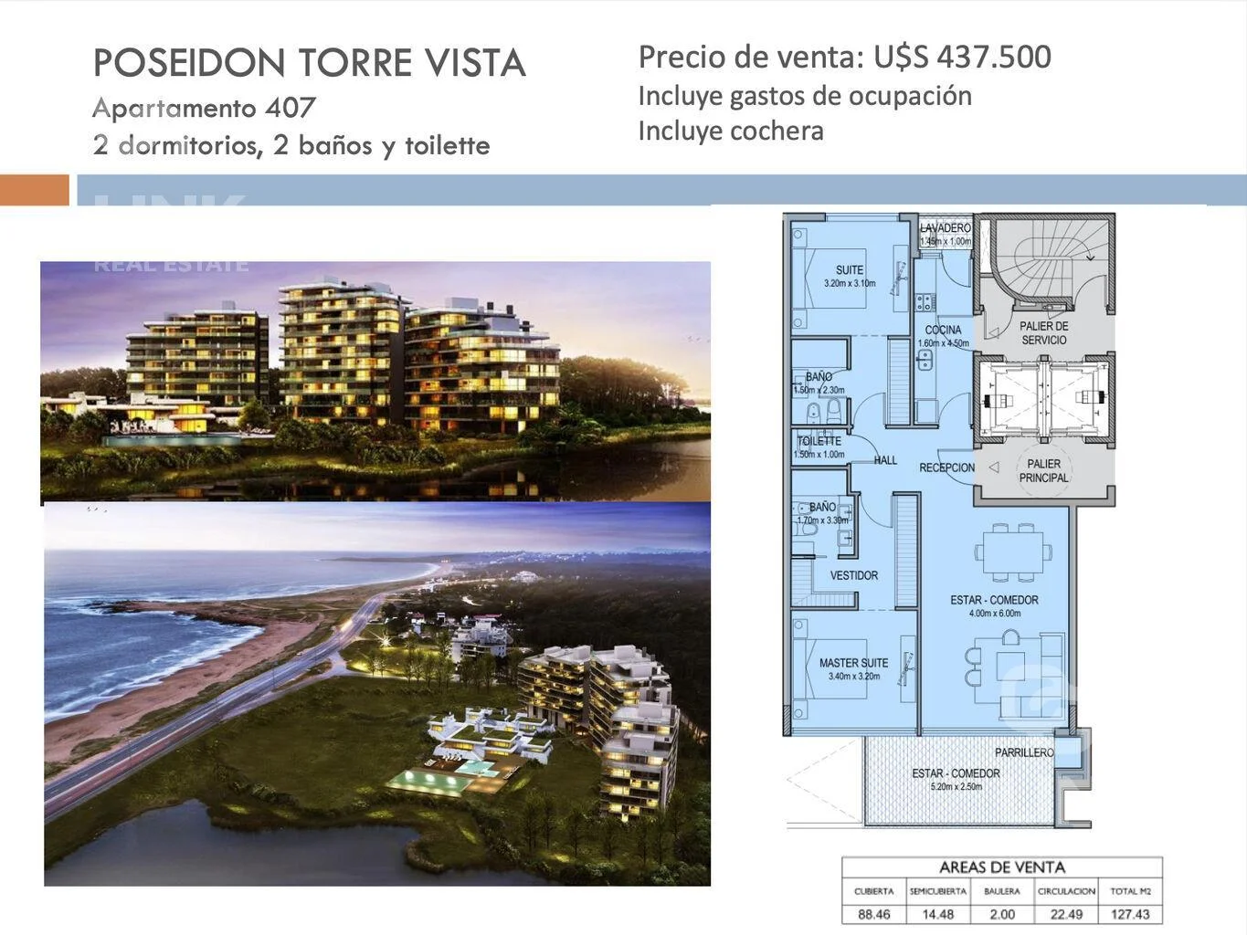 Poseidón Laguna — Apartamento a estrenar de 2 dormitorios en Playa Mansa. Apartamento a estrenar en Playa Mansa con vista al mar y los mejores atardeceres de Punta. Cuenta con dos suites, living-comedor con cocina integrada y toilette. Incluye garaje y gastos de ocupación. El edificio ofrece todo: piscinas interior y exterior, gimnasio, spa, parrilleros, kids club y más. Las imágenes corresponden al showroom, el apartamento se entrega sin mobiliario.