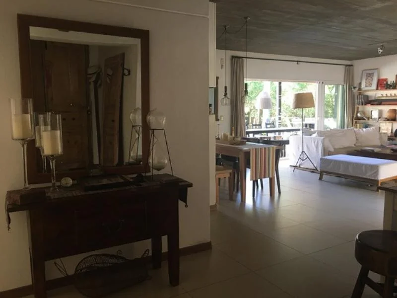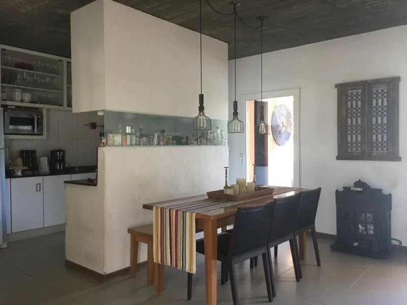 Muy linda casa en una sola planta, en el Barrio Privado Le Residende, cuenta con 3 dormitorios, uno de ellos en suite, living comedor concocina semi integrada, lavadero, despensa, pergola con parrillero y piscina. Playroom. Losa radiante electrica en la suite principal,y baños, Split en todos los dormitorios, y estufa a leña en el living, y salamandra de hierro a gas.