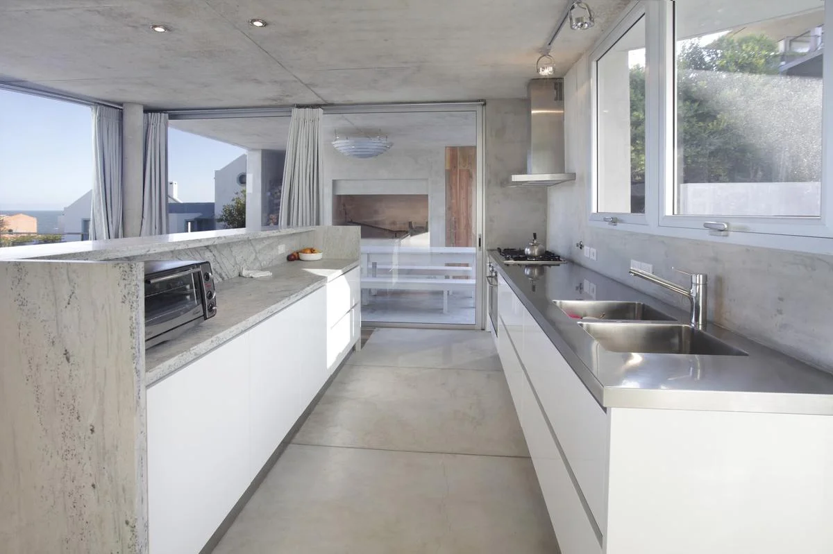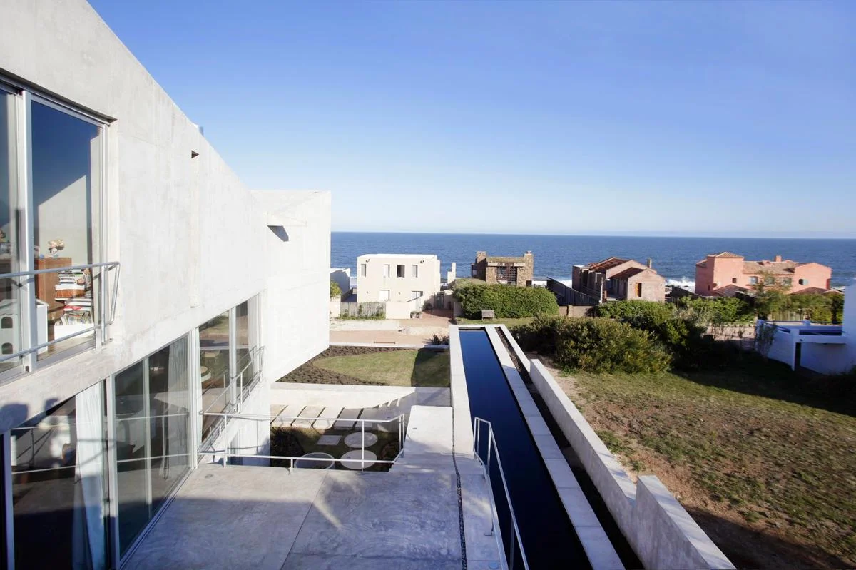 Excelente casa, en segunda fila en Punta Piedras. Vanguardista y original diseño del Arq. Diego Montero, interpretando con exactitud y pasión cada detalle. Sólida construcción de cemento,con ventanales corredizos de techo a piso que permiten disfrutar de las vistas al mar en sus tres plantas. Cuatro dormitorios, dos abajo que comparten un baño y dos arriba, donde se encuentra la suite principal con su propia terraza. Living y comedor amplio, cocina integrada que abre hacia un patio con barbecue ideal para reuniones de verano. Lavadero, cuarto de servicio y garage. A 5 minutos de Manantiales con bistros, galerias de arte y boutiques. Pileta de 25 metros.