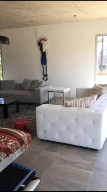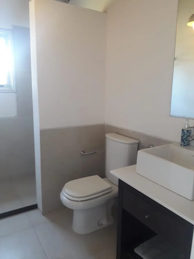 Estudio o escritorio, jardín muy cómodo con piscina y garage para dos autos.