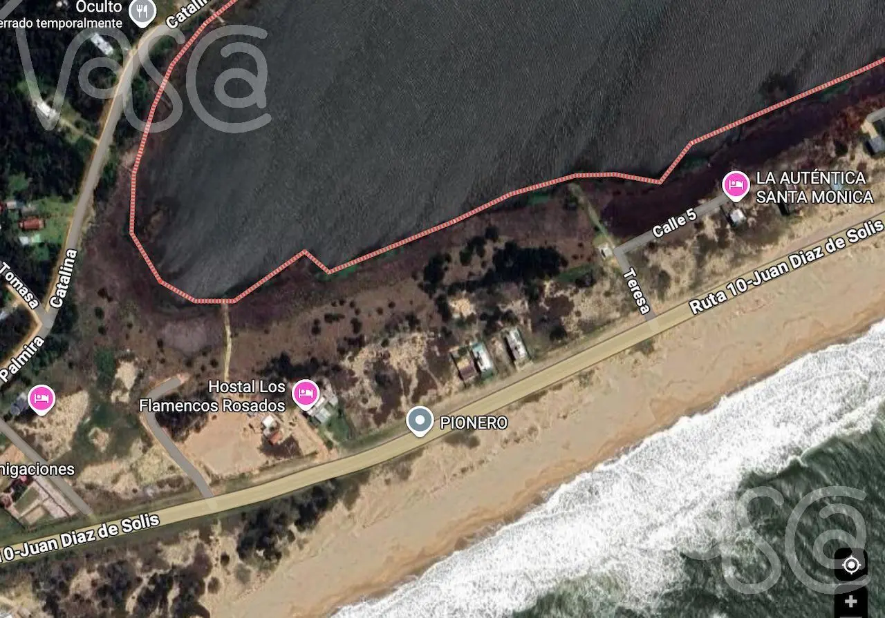 Terreno en primera linea frente al mar, sobre Ruta 10 y la Laguna de Los Flamencos, en Santa Monica. Titulos al día.