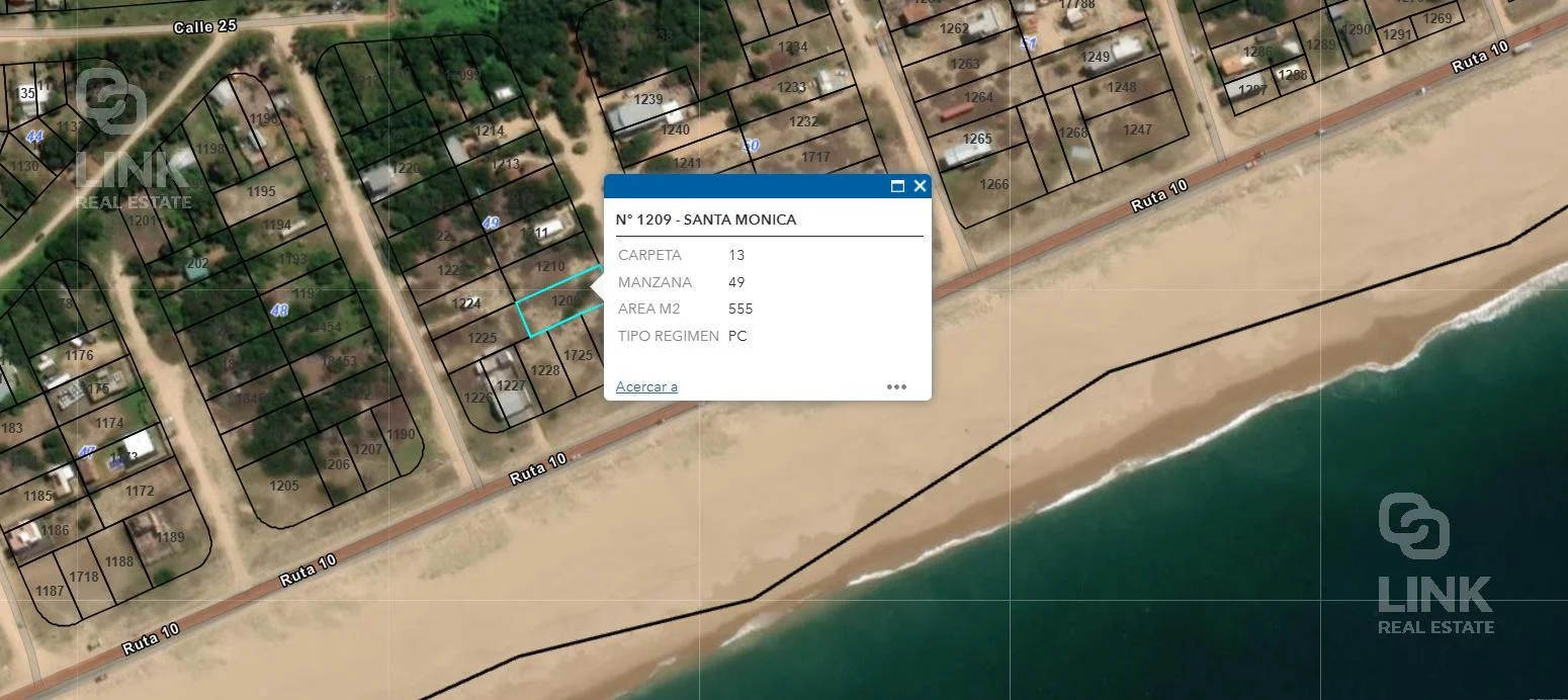 A pasos del mar en Santa MónicaTerreno de 1100 m² ubicado en segunda línea al mar. Entorno natural único, ideal para disfrutar de la tranquilidad y privacidad que distinguen al lugar. LINK330TD - Precio mas comisión inmobiliaria