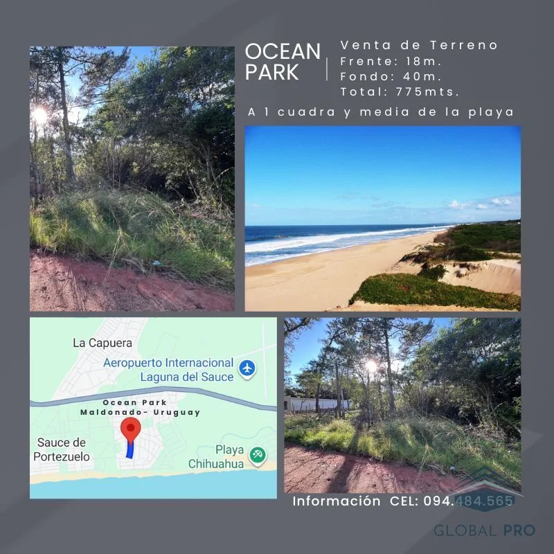 Terreno en venta con 775m² en un lugar muy demandado en Ocean Park, Maldonado, próximo al aeropuerto del Sauce y de Punta del Este. Cuebta con 18 mt. de frente y 40 mt.de fondo. Se encuentra ubicado este terreno a una cuadra de la playa. Una ubicación espectacular rodeado de naturaleza. Ideal para construir en un terreno ya plano y pronto para ingresar.