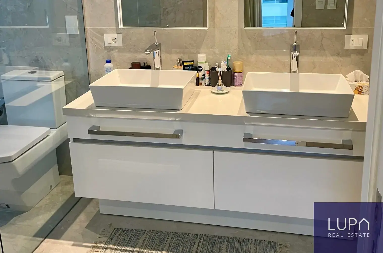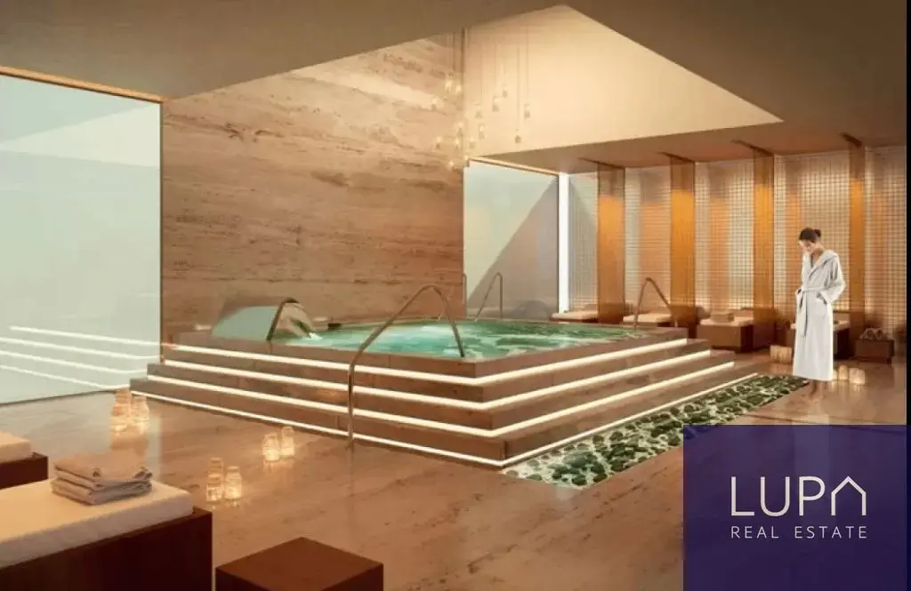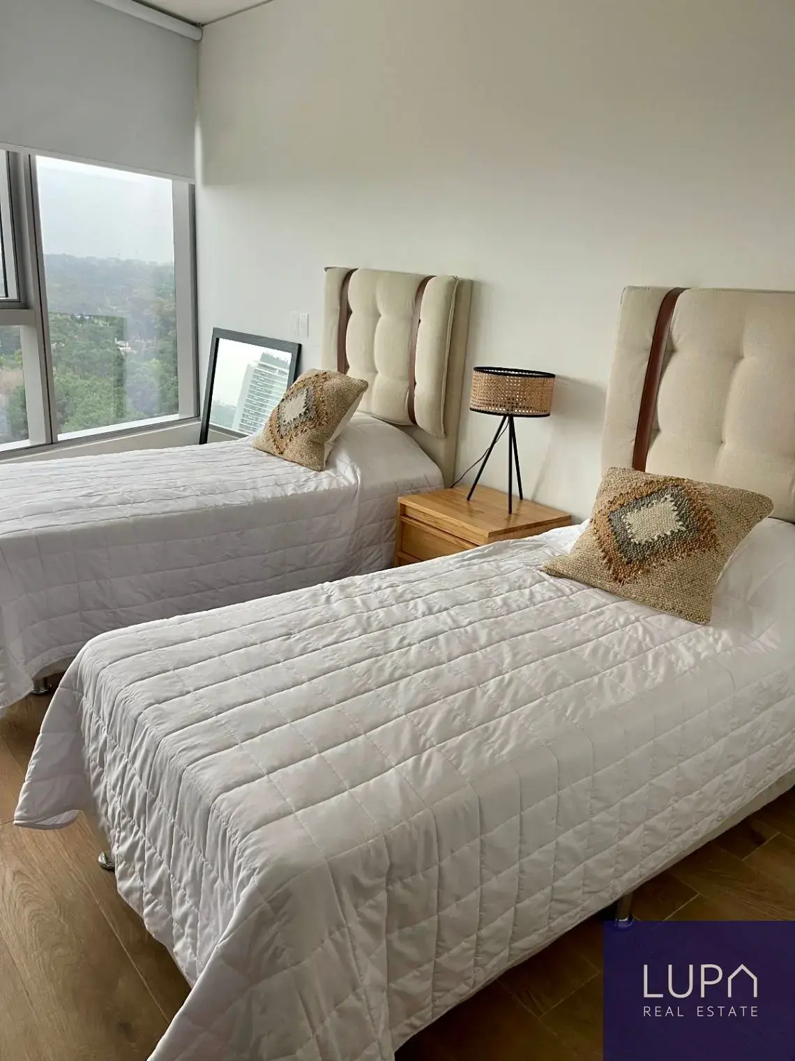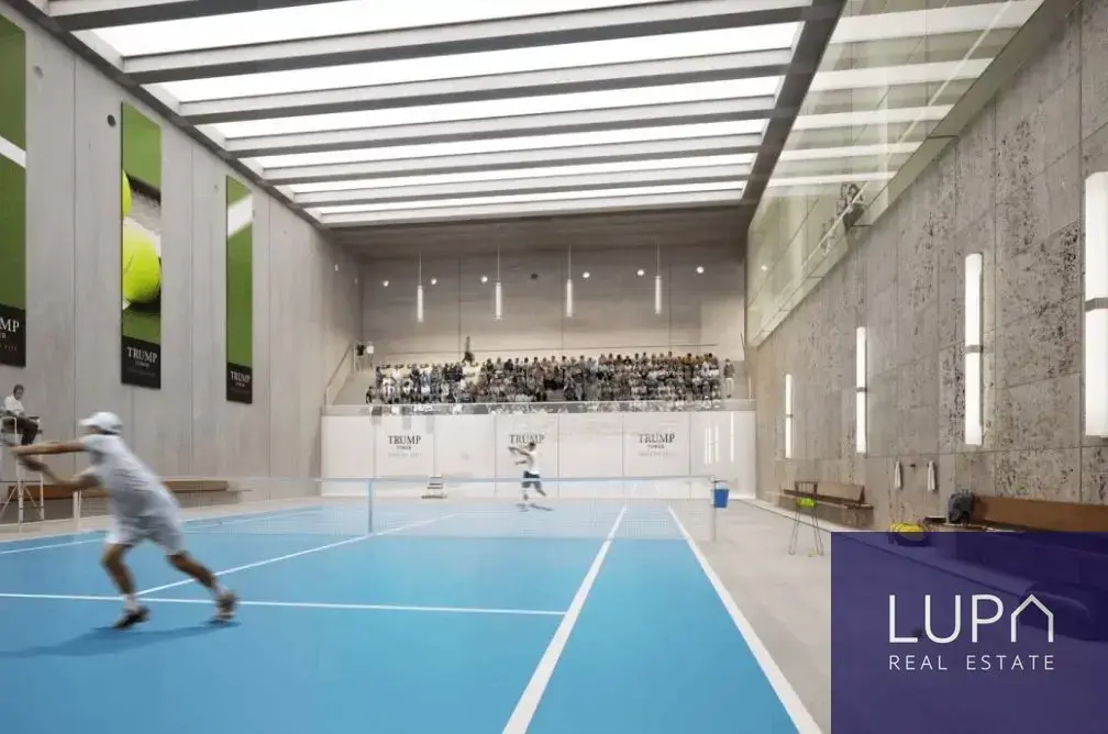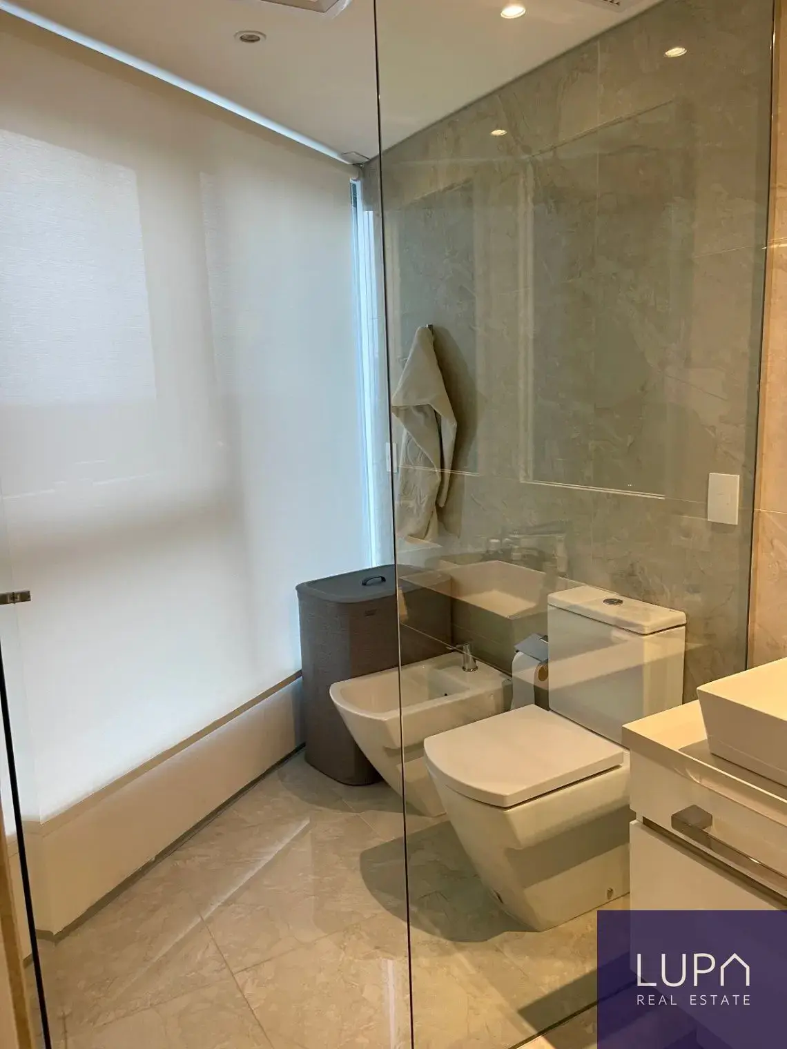 El edificio ofrece un lobby de doble altura con pisos de mármol, y una variedad de amenidades que incluyen helipuerto, cancha de tenis, piscina, fitness center, y un exclusivo servicio de conserjería y valet parking para propietarios e invitados.