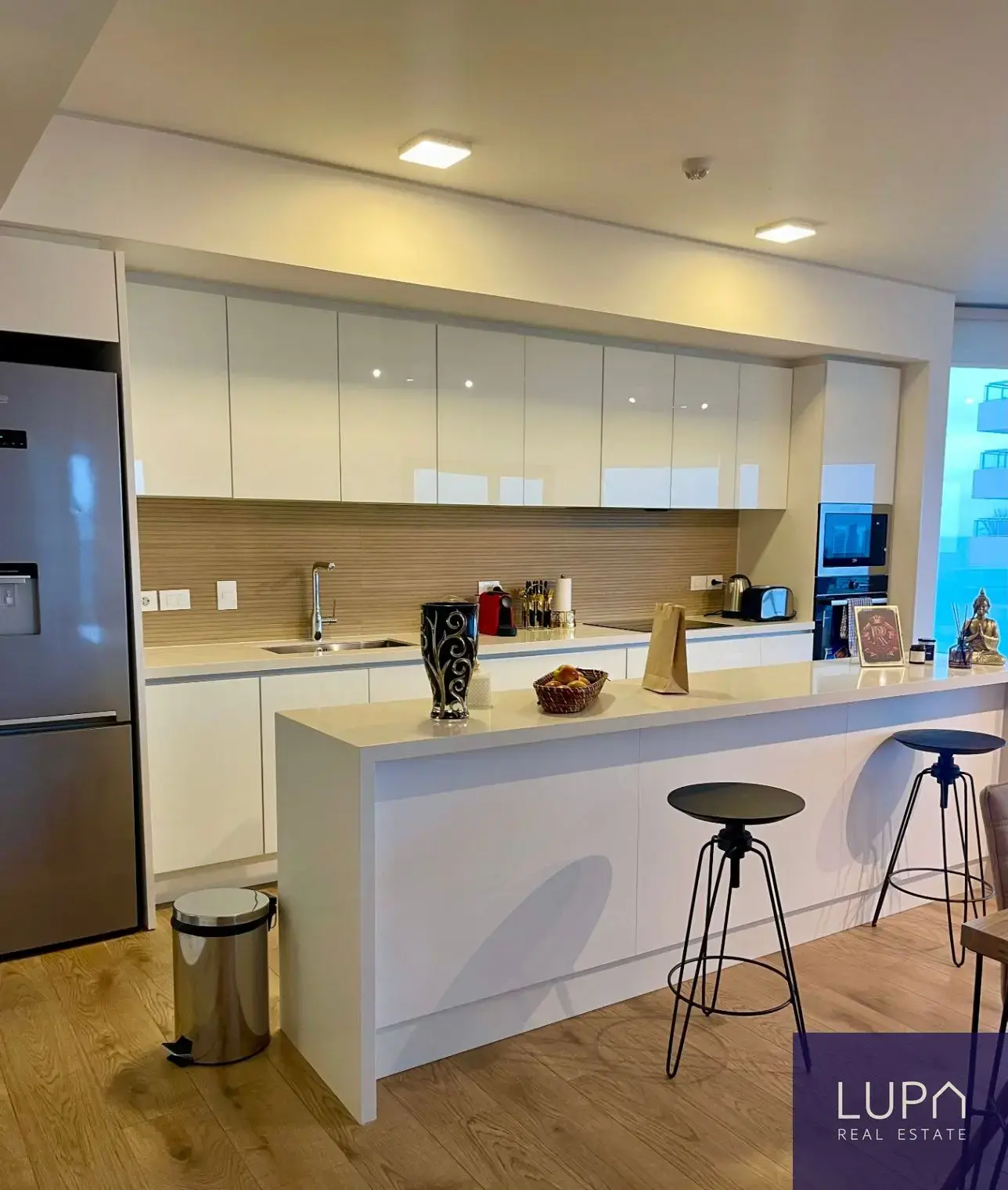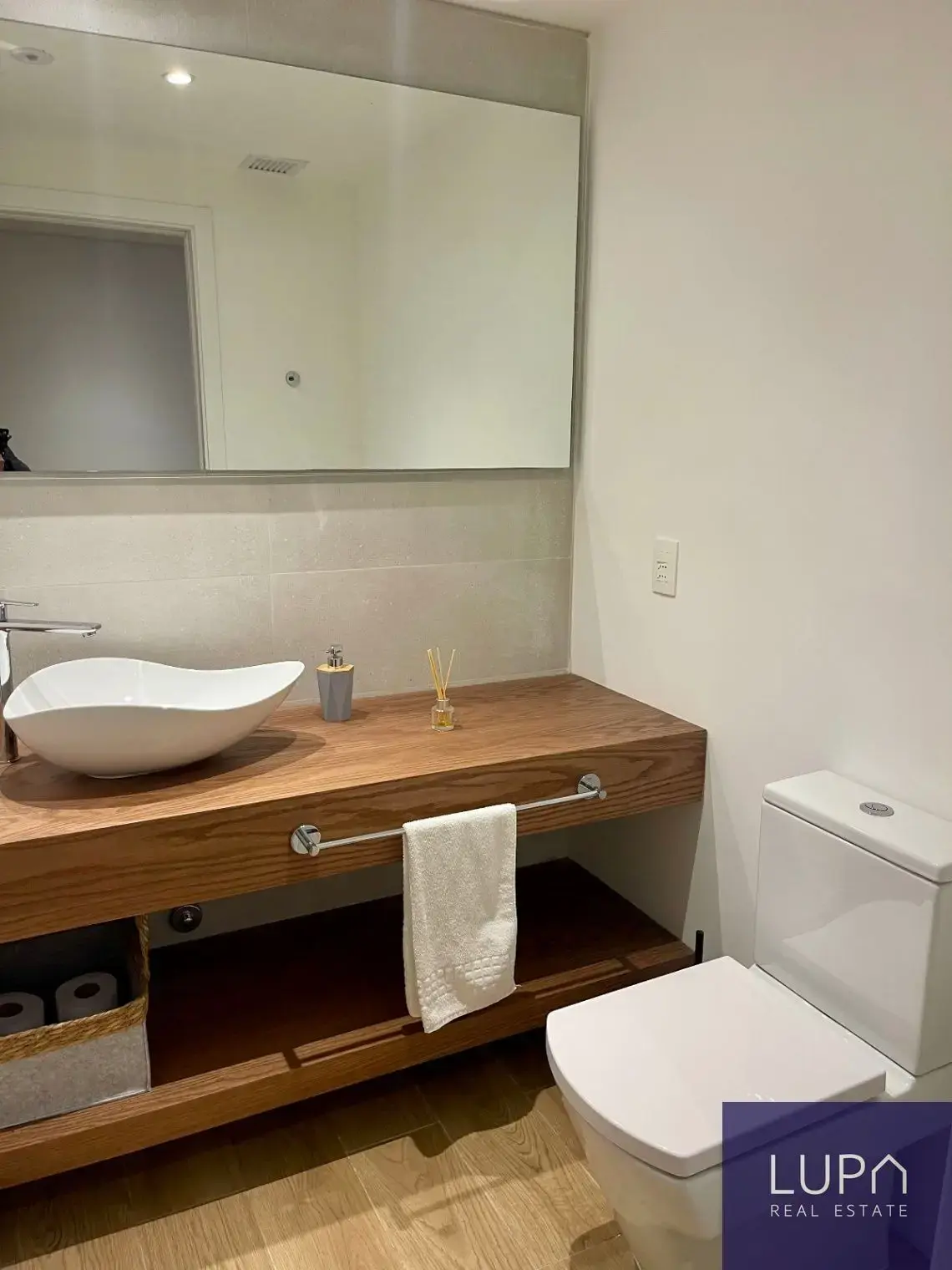El amplio living comedor se integra con una cocina de alta gama, equipada con tecnología de domótica que permite controlar el clima y la iluminación a su conveniencia.