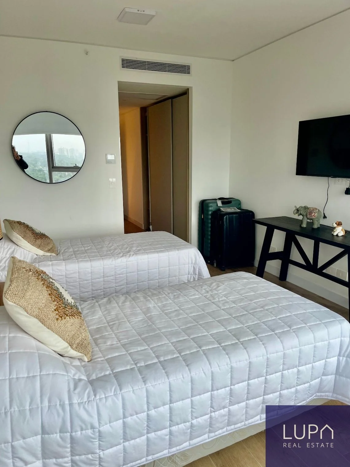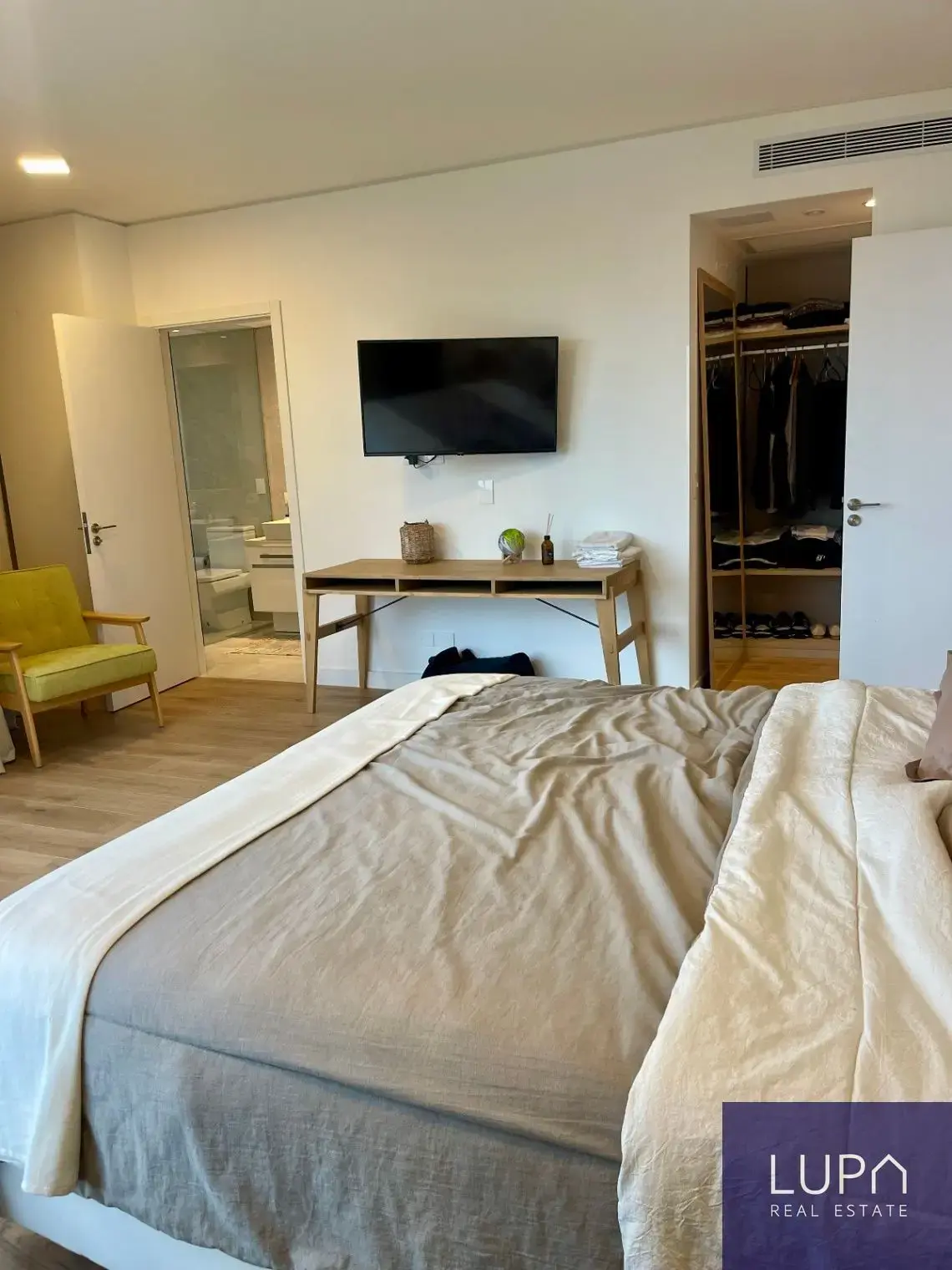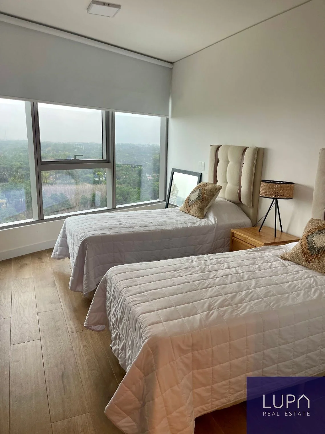 El apartamento se compone de 2 dormitorios, ambos en suite, con la habitación principal que incluye un elegante vestidor y un baño privado.