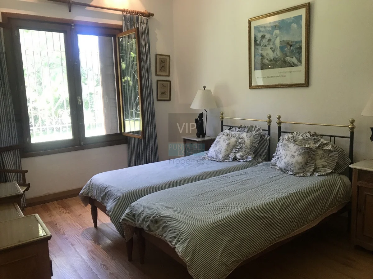 Son 4 cómodas suites. Cocina, despensa. Dependencia de servicio doble. Departamento de huéspedes en planta alta. Despampanante living. En cada sector ofrece unas enormes estufas a leña . Saliendo del mismo, hermosa galería con vista a los 8000 m2 de parque y a una magnífica piscina con deck y parrillero. Detrás, depósito para herramientas y riego. Precio: U$S 2.500.000 Referencia Interna : Tera-1007