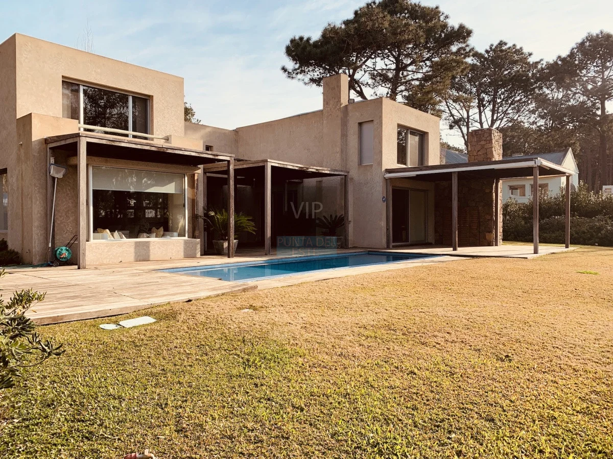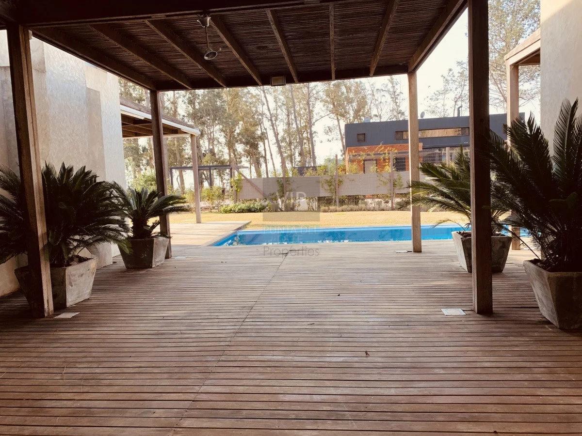 Excepcional casa ubicada dentro del club privado de Laguna Blanca, sobre laguna diseño del Arq Marcelo Daglio, orientada al norte, hace de su hermoso jardín con piscina, un lugar inmejorable.