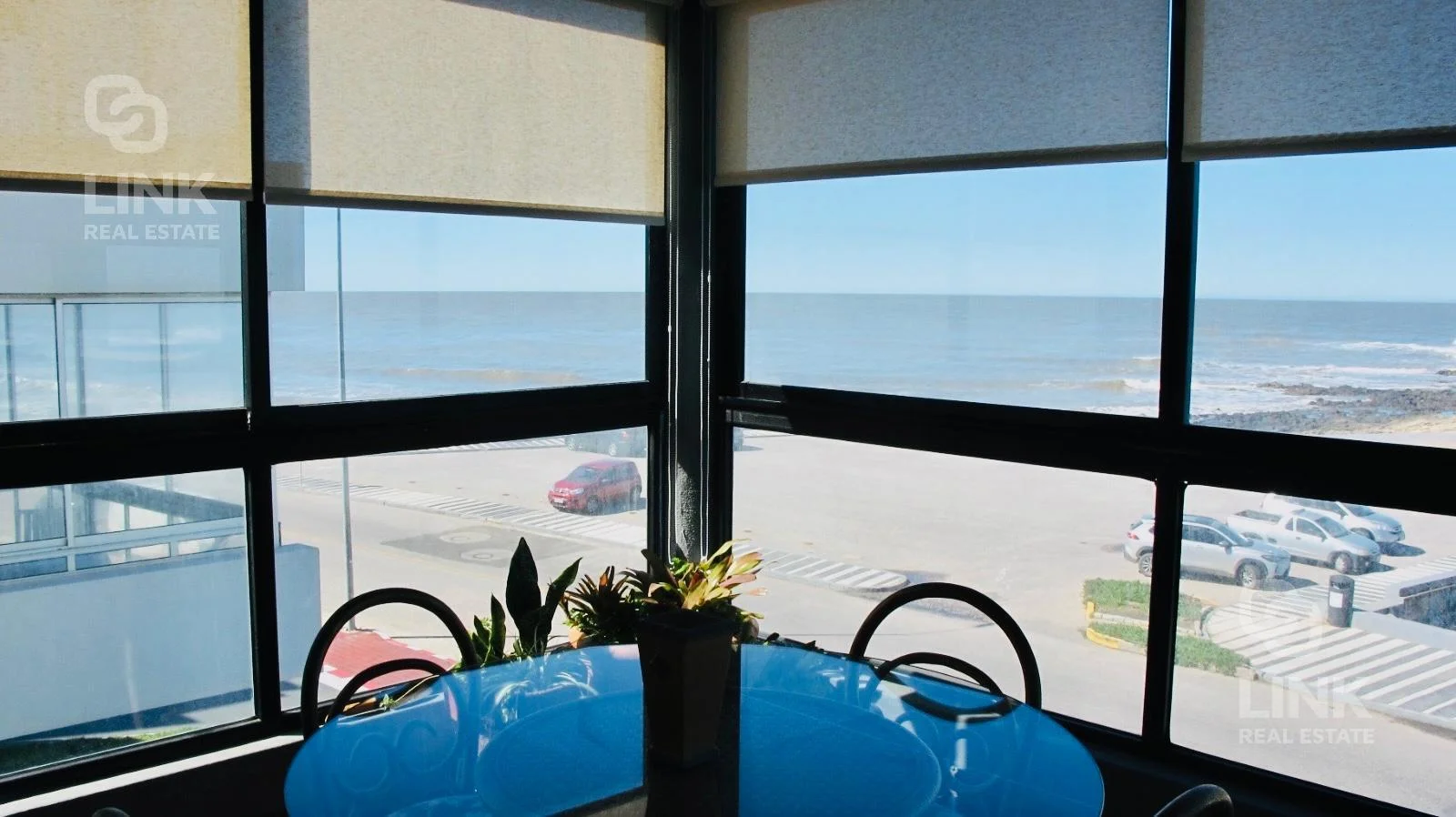 El living-comedor amplio y con estufa a leña de alto rendimiento se conecta a un balcón cerrado con vidrio, perfecto para disfrutar de la vista al mar durante todo el año, sin importar el clima.