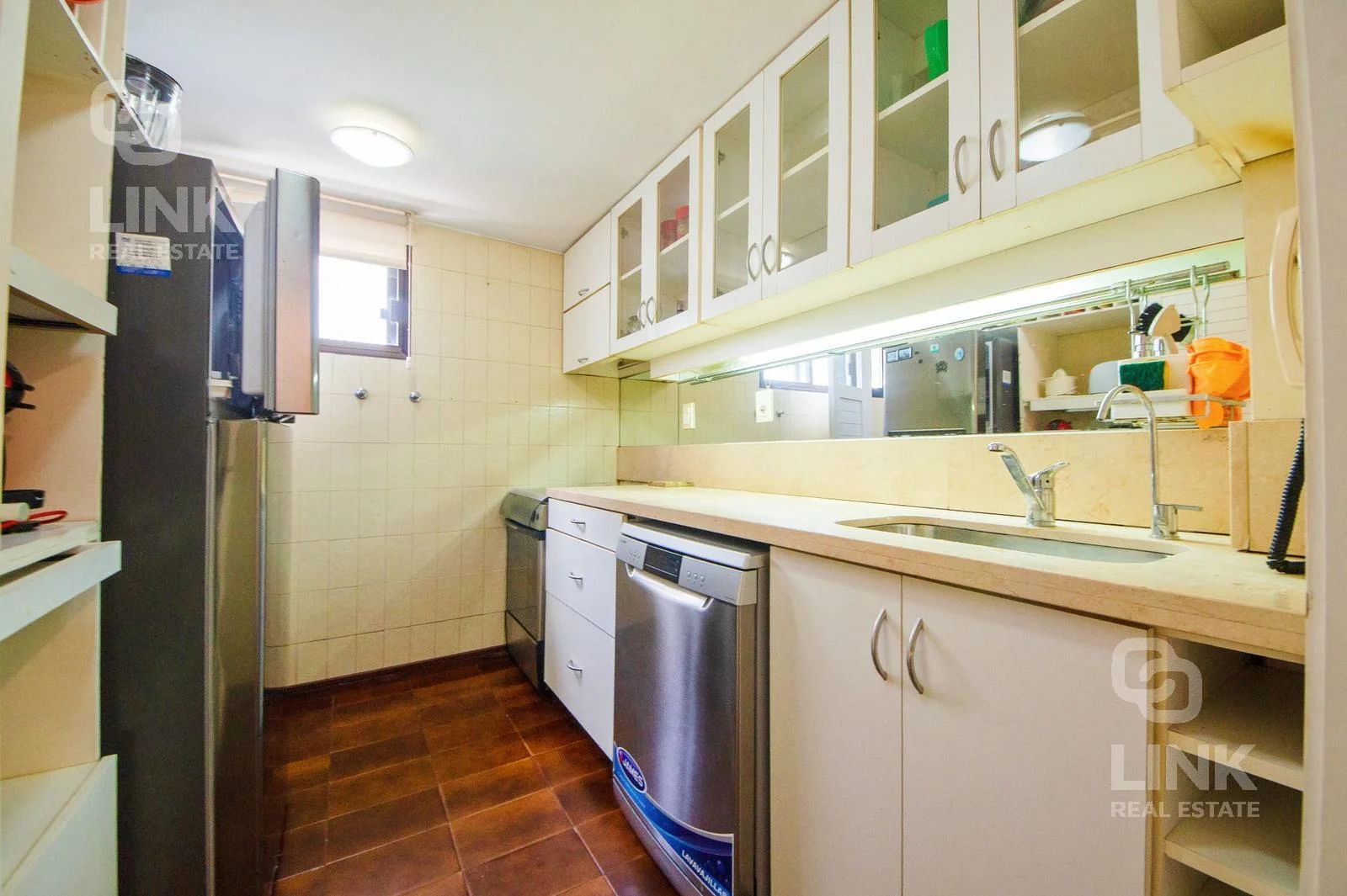 Cuenta con dos dormitorios, siendo el principal en suite, además de cuarto de servicio con baño propio. Los baños fueron recientemente reciclados, combinando diseño y practicidad. La cocina definida incluye un mini lavadero, ideal para el uso diario.
