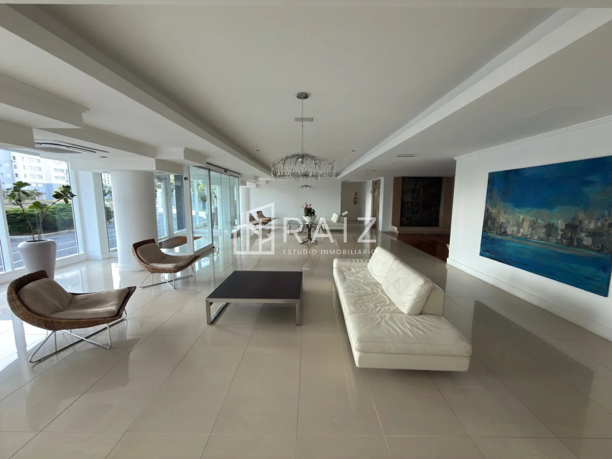 El edificio ofrece amenities de primer nivel: recepción, microcine, servicio de playa, sauna y piscina climatizada, pensados para que disfrutes todo el año.