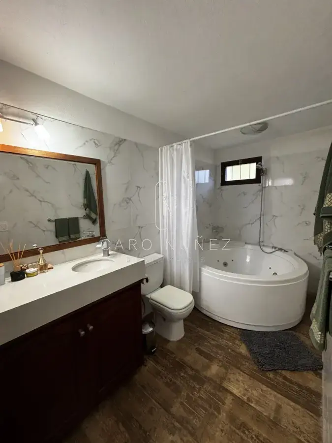 Cuenta con un gran fondo con picina climatizada y gran deck con parrillero