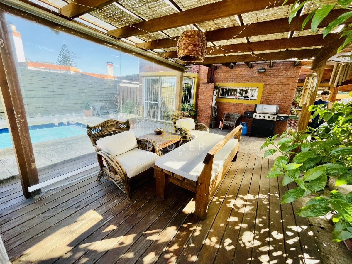 La propiedad cuenta con piscina, jardín, barbacoa con horno de barro, 1 baño, garage y estacionamiento.