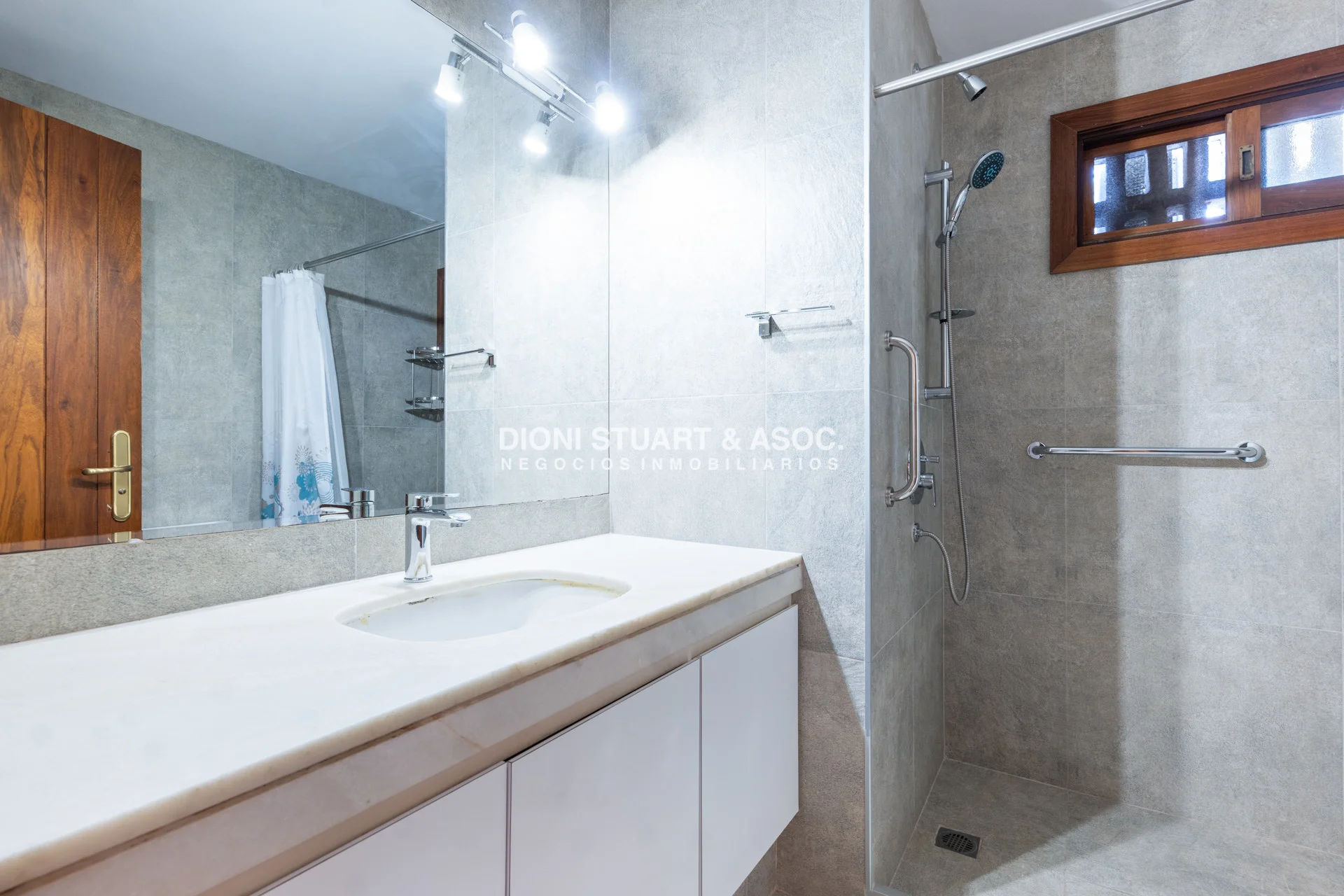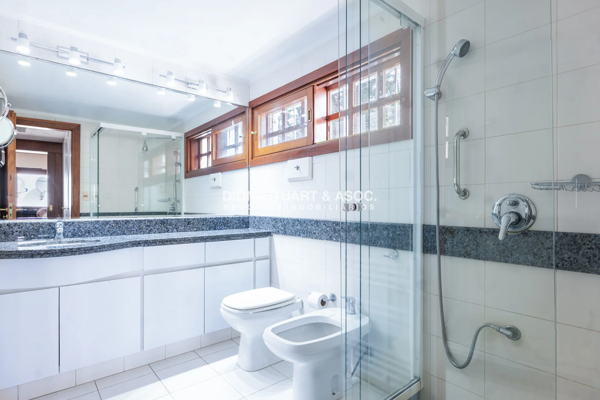 Muy buena construcción mayormente en un nivel. Casa solida de amplio living comedor al jardín con una gran galería. Tres dormitorios en suite. cocina con desayunador, toilette y dependencia de servicio. A subes, cuenta con dos dormitorios que pueden oficiar de huespedes o para empleados. En total cuenta con 5 dormitorios y la dependencia.