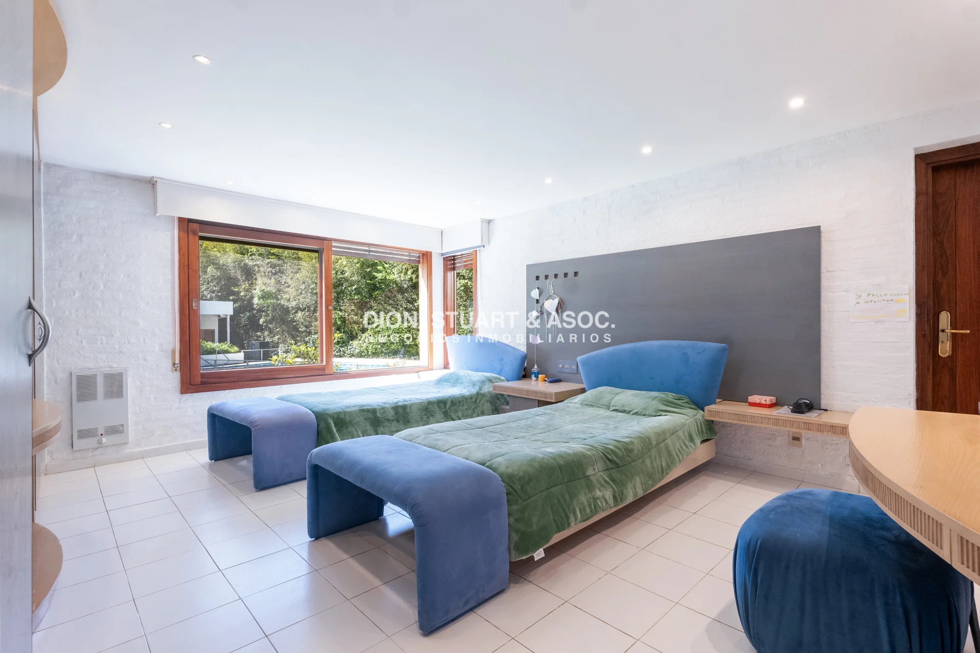 Muy buena construcción mayormente en un nivel. Casa solida de amplio living comedor al jardín con una gran galería. Tres dormitorios en suite. cocina con desayunador, toilette y dependencia de servicio. A subes, cuenta con dos dormitorios que pueden oficiar de huespedes o para empleados. En total cuenta con 5 dormitorios y la dependencia.