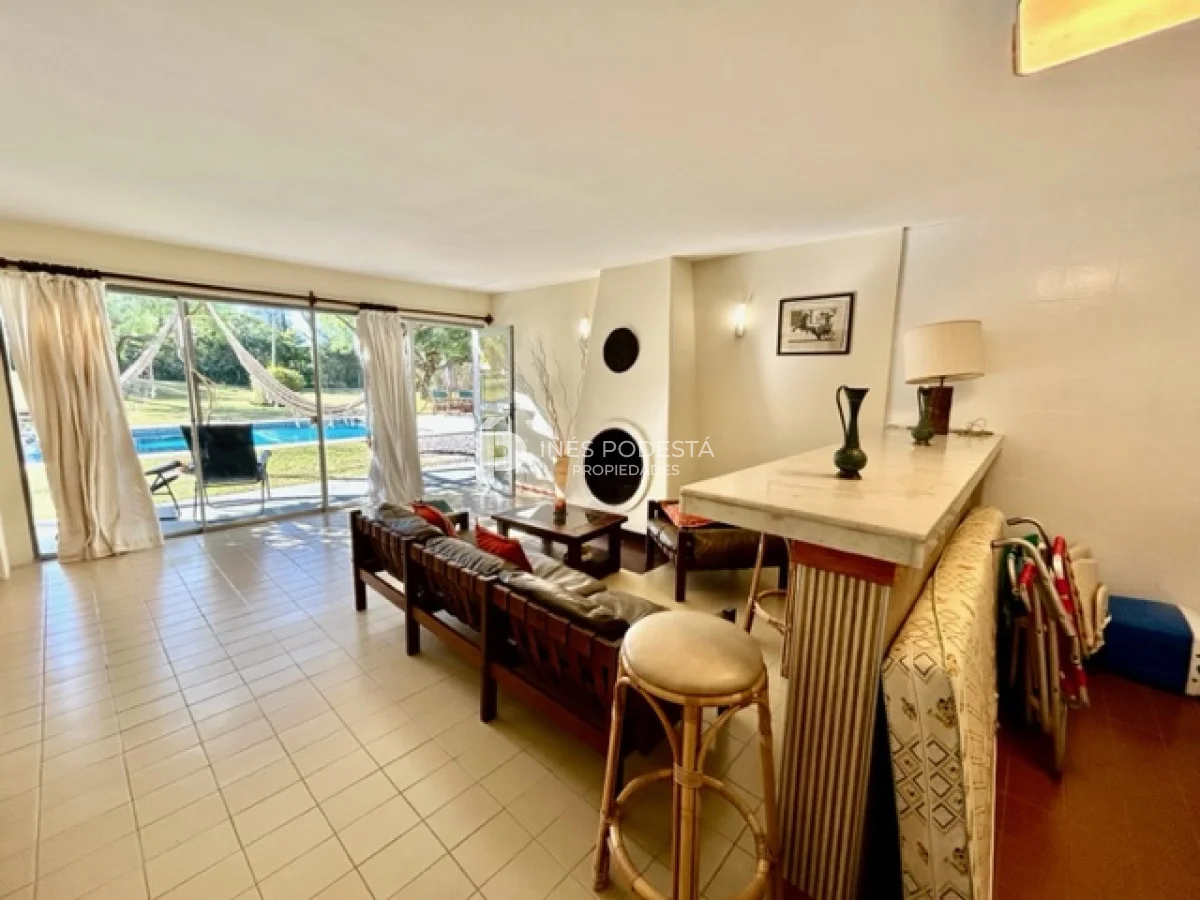 Rincón del Indio,900 m2 de parque y 308 m2 edificados, living comedor con estufa a leña, 3 dormitorios, 3 baños (1 en suite), cocheras con capacidad para 4 autos, parrillero techado, lavadero, casa de huéspedes independiente con gran estar con estufa a leña, kitchenette, dormitorio y baño reciclado, verja perimetral, piscina climatizada, alarma, pozo y sistema de riego!