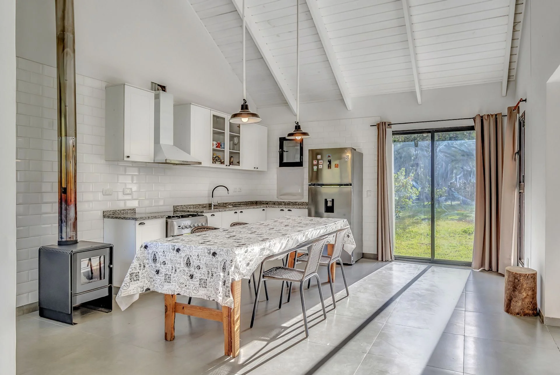 Living comedor sumamente luminoso y soleado, con estufa de leña, también cuenta con estufa
