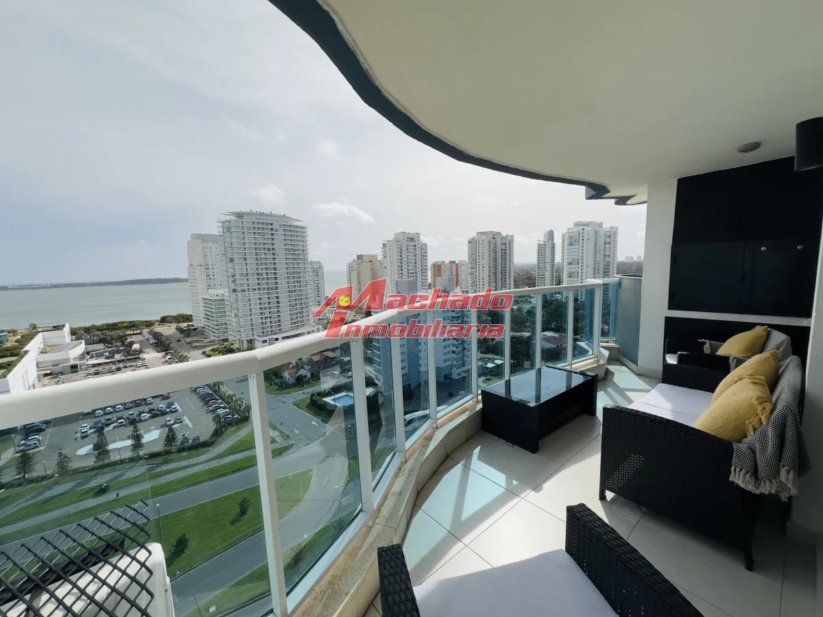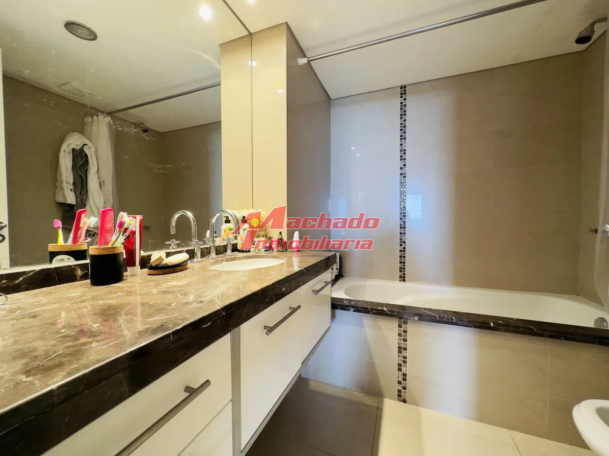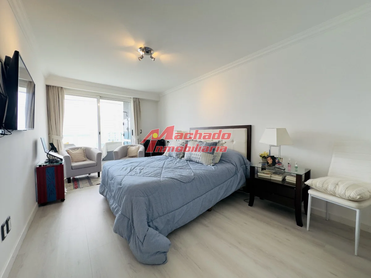 Hermoso apartamento a 200 mts de la playa mansa, parada 4, Punta del Este. Cuenta con 2 dormitorios en suite, un medio dormitorio y toillette. Living comedor con salida al balcón, que cuenta con parrillero propio y una hermosa vista a la isla gorriti y al mar. Orientación oeste, con sol toda la tarde, para apreciar al final del día la puesta de sol. Cocina amplia muy bien equipada y con terraza lavadero propia. Garage en subsuelo. Edificio con muy buenos servicios. Agende su visita! Referencia Interna : Tera-8864