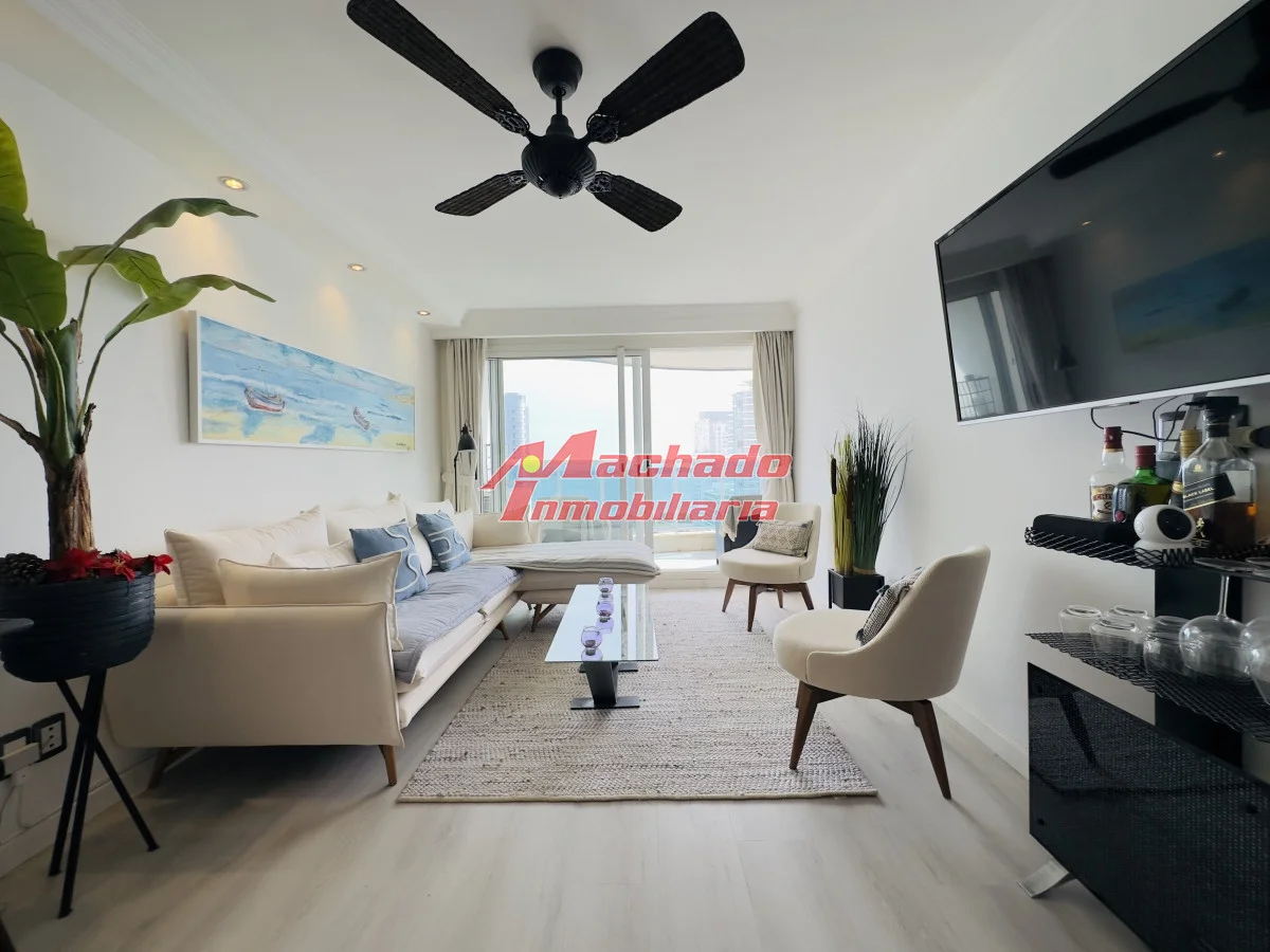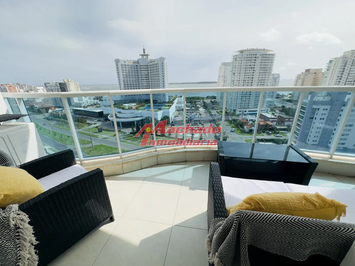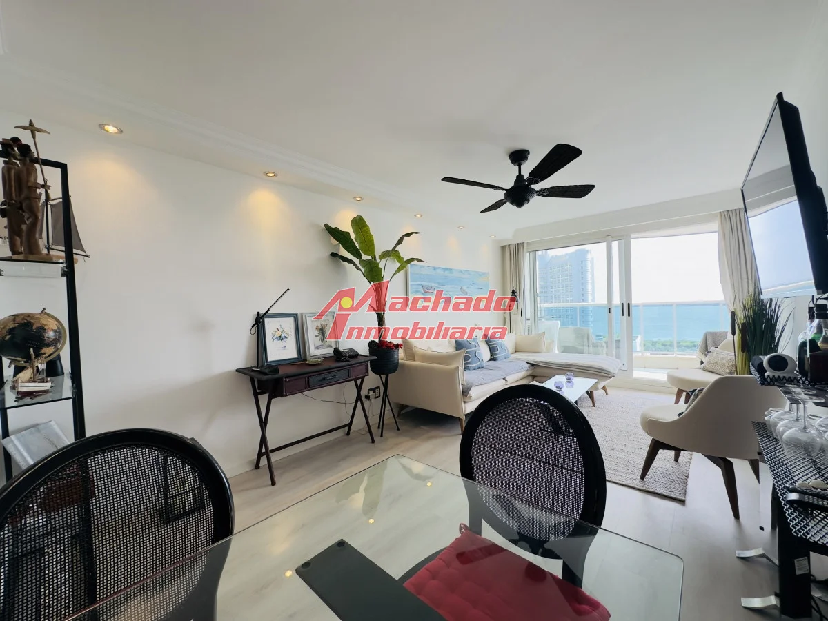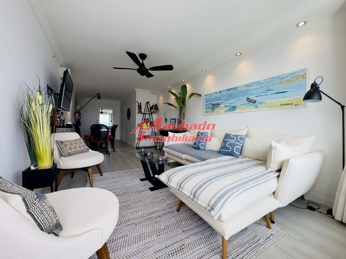 Hermoso apartamento a 200 mts de la playa mansa, parada 4, Punta del Este. Cuenta con 2 dormitorios en suite, un medio dormitorio y toillette. Living comedor con salida al balcón, que cuenta con parrillero propio y una hermosa vista a la isla gorriti y al mar. Orientación oeste, con sol toda la tarde, para apreciar al final del día la puesta de sol. Cocina amplia muy bien equipada y con terraza lavadero propia. Garage en subsuelo. Edificio con muy buenos servicios. Agende su visita! Referencia Interna : Tera-8864