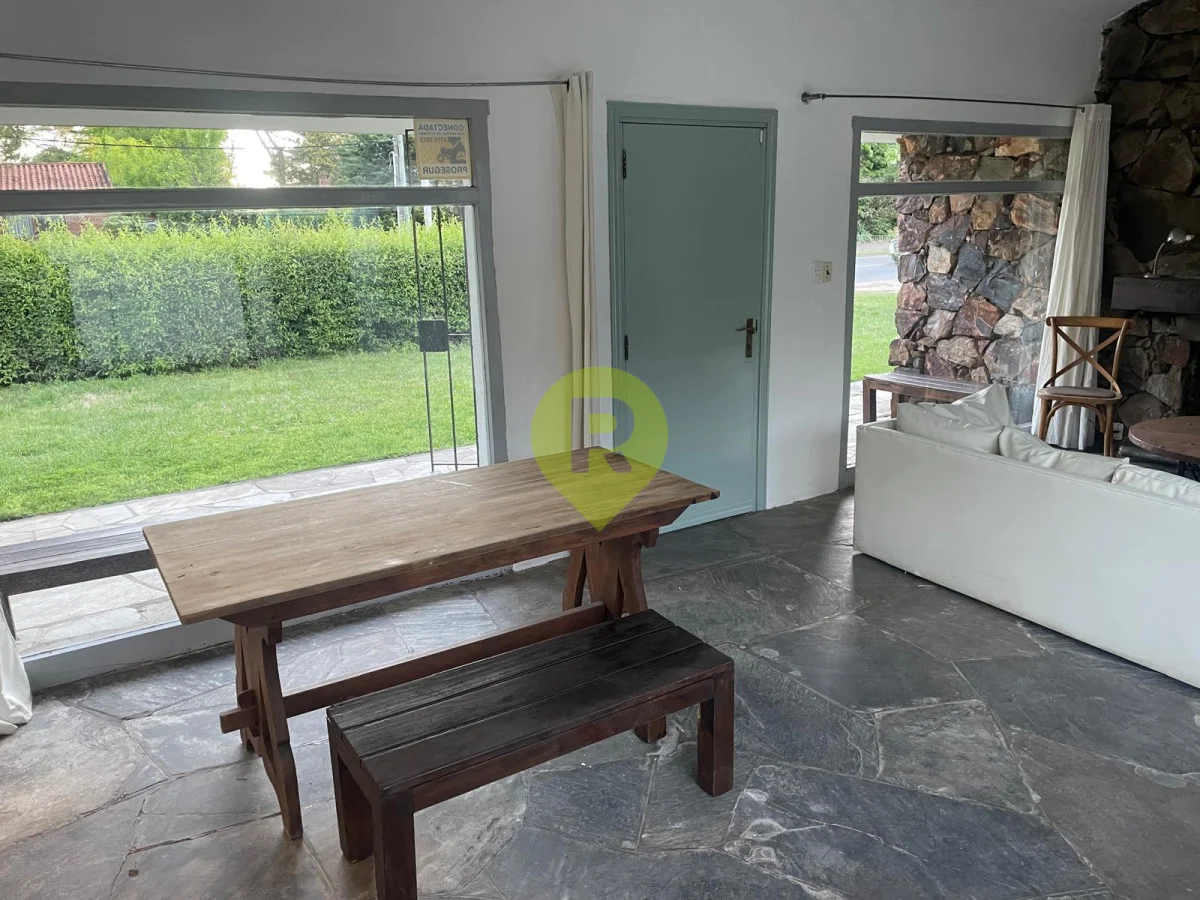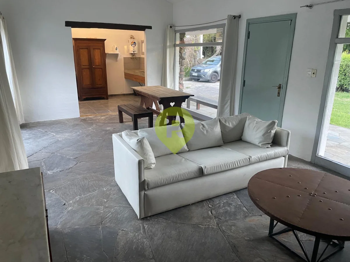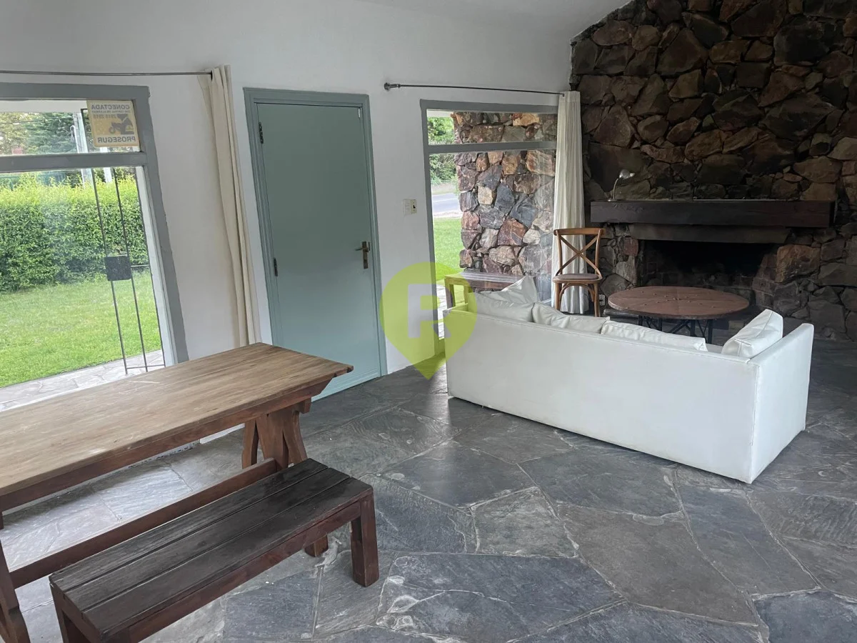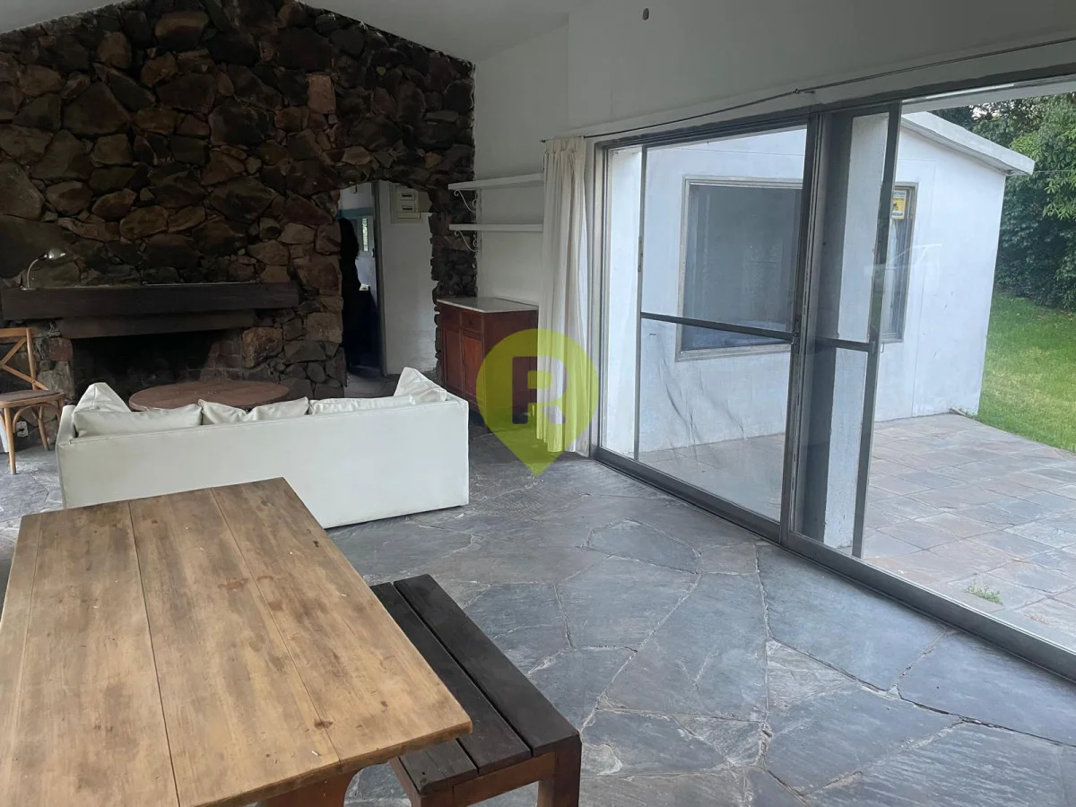 Casa principal (90 m²): amplio living-comedor con hogar a leña, cocina definida con posibilidad de integrarla al área social, tres dormitorios con armarios empotrados y un baño completo.