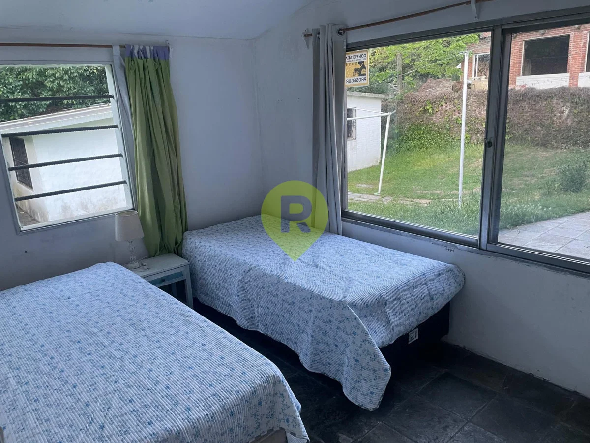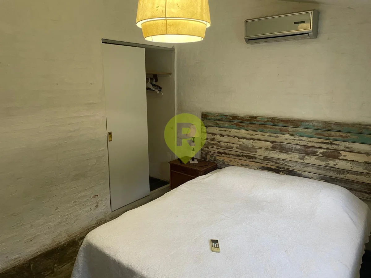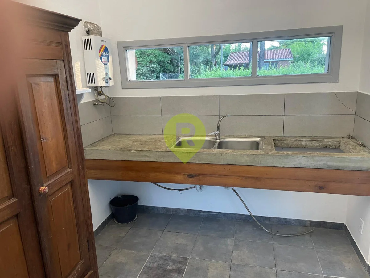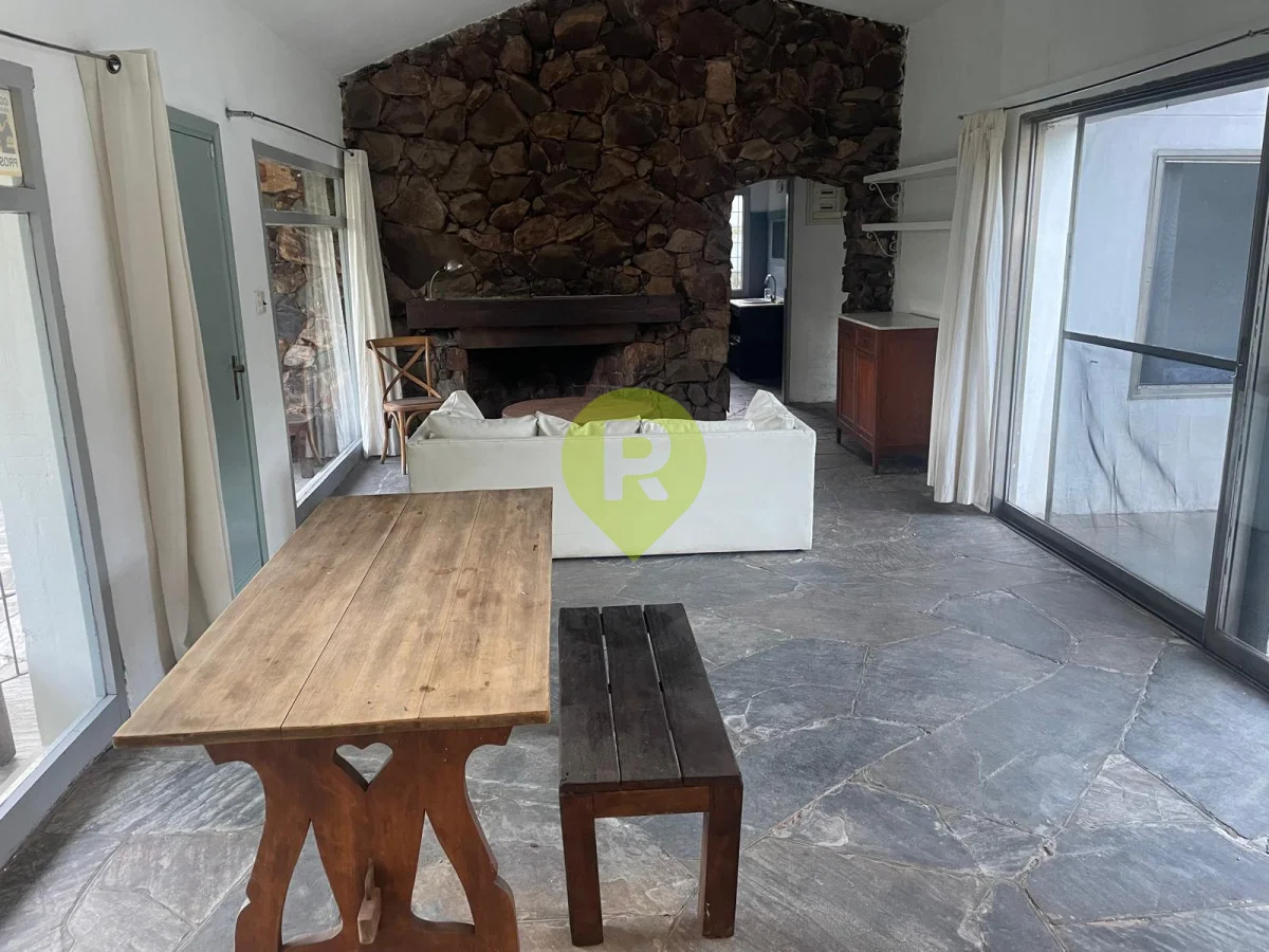 Casa principal (90 m²): amplio living-comedor con hogar a leña, cocina definida con posibilidad de integrarla al área social, tres dormitorios con armarios empotrados y un baño completo.