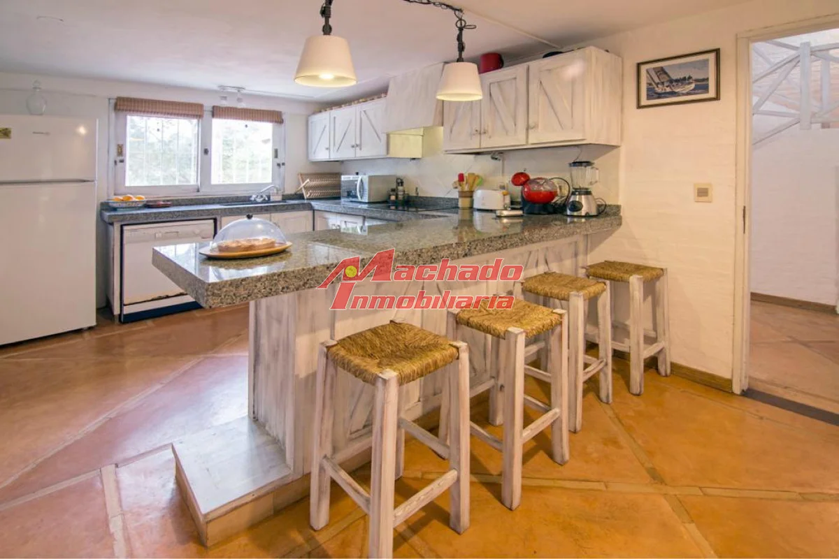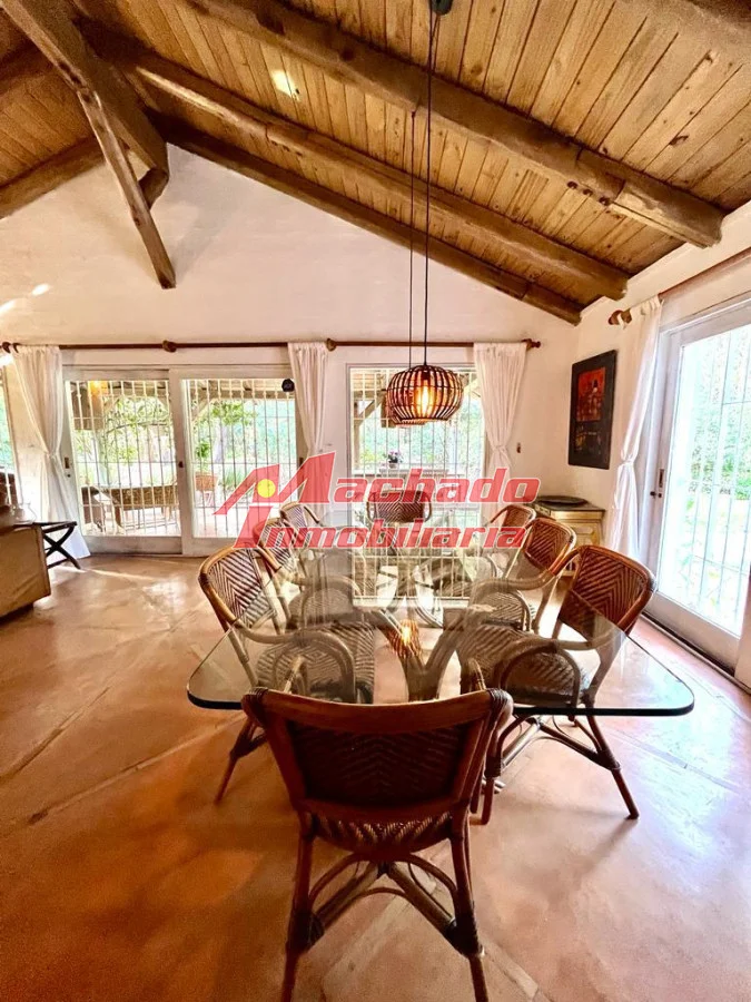 Importante residencia desarrollada en dos plantas. Ubicada en un estratégico y espectacular entorno de mansiones y jardines elevados.. Muy buenas comodidades, eficiente distribución y orientación sumado un interesante diseño arquitectónico. Casa en Pinares - Punta del Este Ubicado a 1000 metros del Mar. Cuenta con 4 Dormitorios 4 Baños 4 Suites Cocina : Cocina, Living , Comedor Terreno : 3625 m2 Edificado : 400 m2 Referencia Interna : Tera-12072