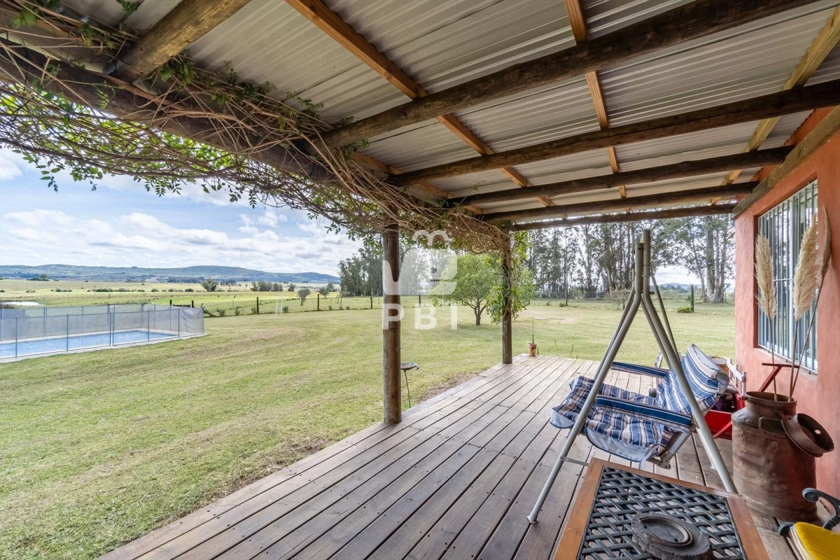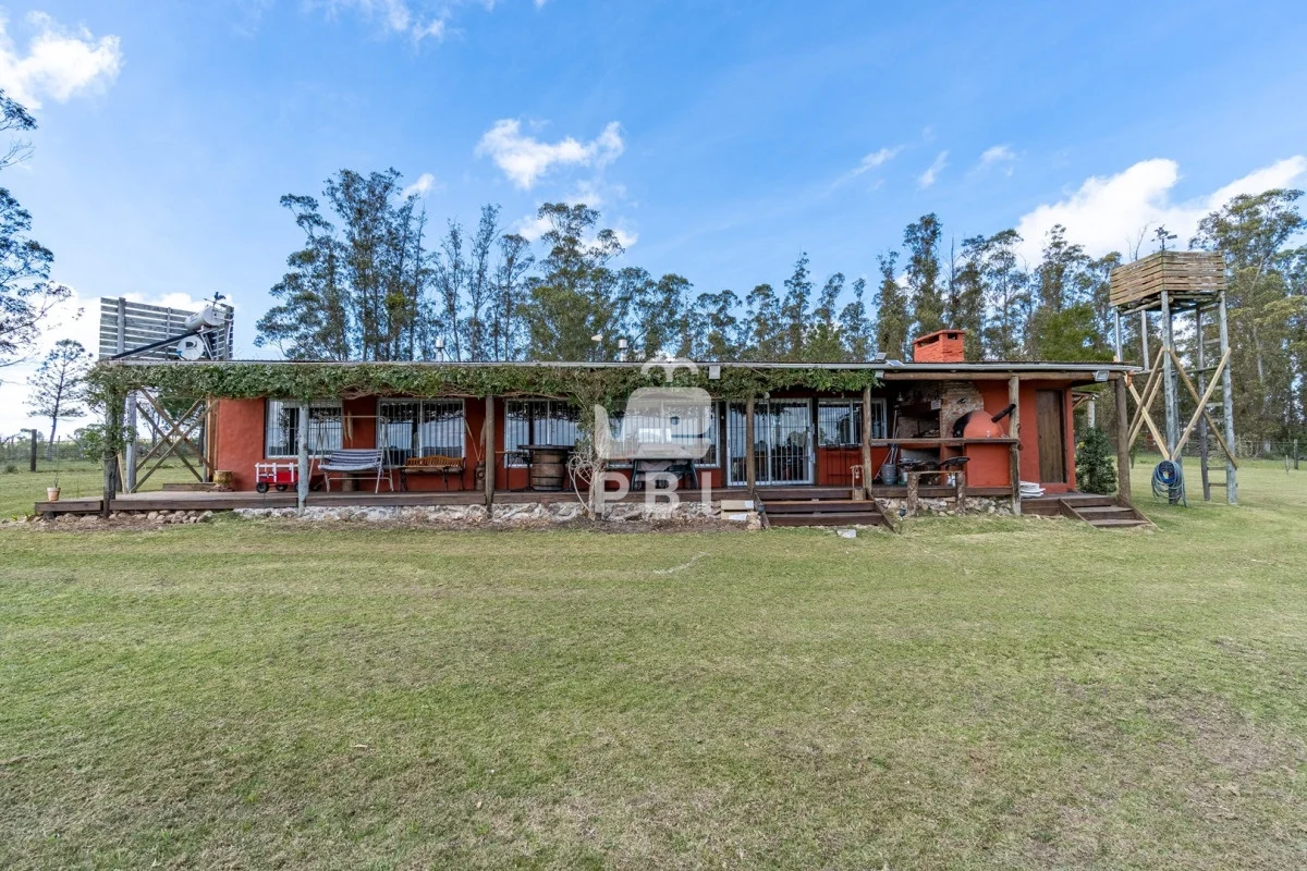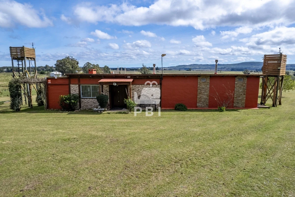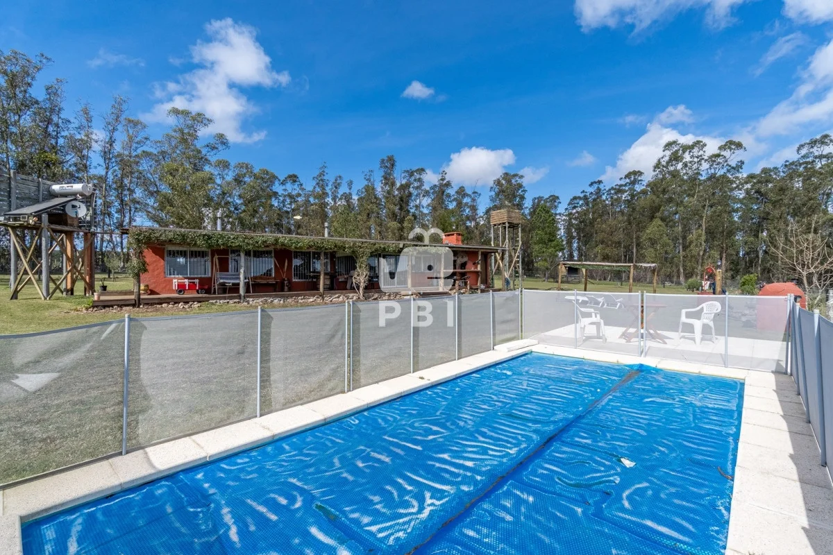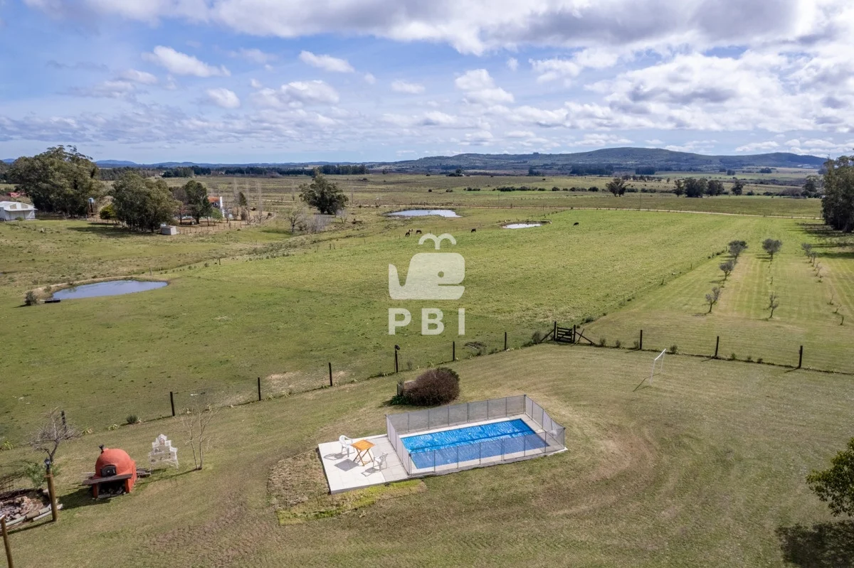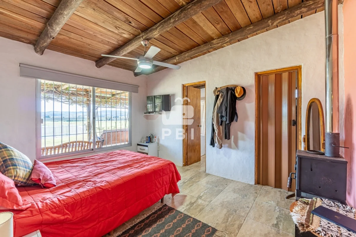 Chacra en venta de 5HA 5000m² de superficie, en un lindo entorno natural con vista a las sierras, tiene monte de eucaliptus, 3 tajamares, alambrada. Con casa de 1 dormitorio en suite con jacuzzi, living comedor con cocina integrada y estufa, otro baño completo, terraza con parrillero y horno a leña. Piscina y cancha de futbol.